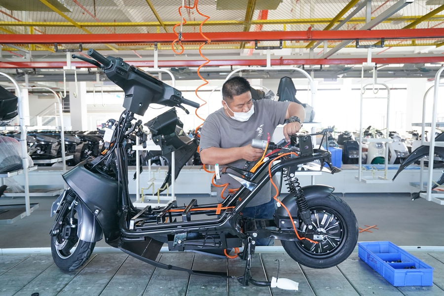廣東小刀新能源科技有限公司工人在組裝電動(dòng)車(chē)。
