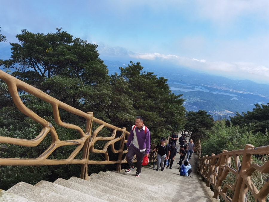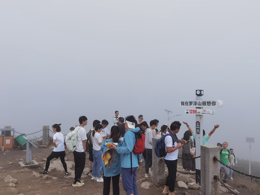 一山有四季,十里不同天。嶺南第一山——羅浮山一山多景,高低不同,各美其美。近期,氣溫適宜,天氣晴朗,不少?gòu)V州、深圳、東莞及博羅周邊的驢友和登山愛好者趁著周末登上飛云頂,感受大自然的美好,羅浮山迎來了一撥登山熱。山下陽(yáng)光明媚,山上則是另一番景象?斓胶脻h坡時(shí),風(fēng)夾著絲絲寒意撲面而來,還飄著白白的霧氣,再往上則是云霧繚繞,恍若仙境。到了飛云頂,霧氣籠罩,意境十足。