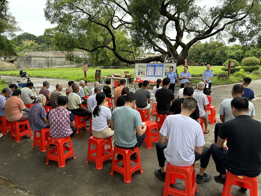 縣公安局督察大隊黨支部聯(lián)合縣公安局反詐宣講團到旭日村開展反詐宣傳。