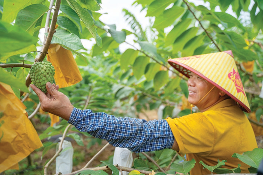 王秋河夫妻倆原本在深圳做生意,打拼20余年。退休后,兩人來(lái)到泰美鎮(zhèn)夏青村租了塊地,從商海轉(zhuǎn)行到田間,做起了農(nóng)民!拔蚁矚g吃釋迦果,我老公說(shuō)那就試著種一種吧。”2019年開(kāi)始,夫妻倆開(kāi)始種植釋迦果,初期只是小范圍試種,但他們種出來(lái)的果子品質(zhì)優(yōu)良,投放市場(chǎng)后供不應(yīng)求,種植范圍逐漸擴(kuò)大到160畝,并種有蓮霧、樹(shù)葡萄、鳳梨等其他品種。