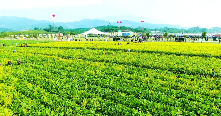 時值寒冬,這里卻一片花團錦簇。這里是博羅縣福田鎮(zhèn)坳嶺村、“環(huán)羅浮山”鄉(xiāng)村振興示范帶的重要節(jié)點村之一。在這里,福田菜心花已盛開如海,空氣中彌漫著一股熟悉而清爽的芬芳。連日來,這一片180畝福田菜心花海,吸引了眾多游人前來賞花、游玩、品菜心宴。