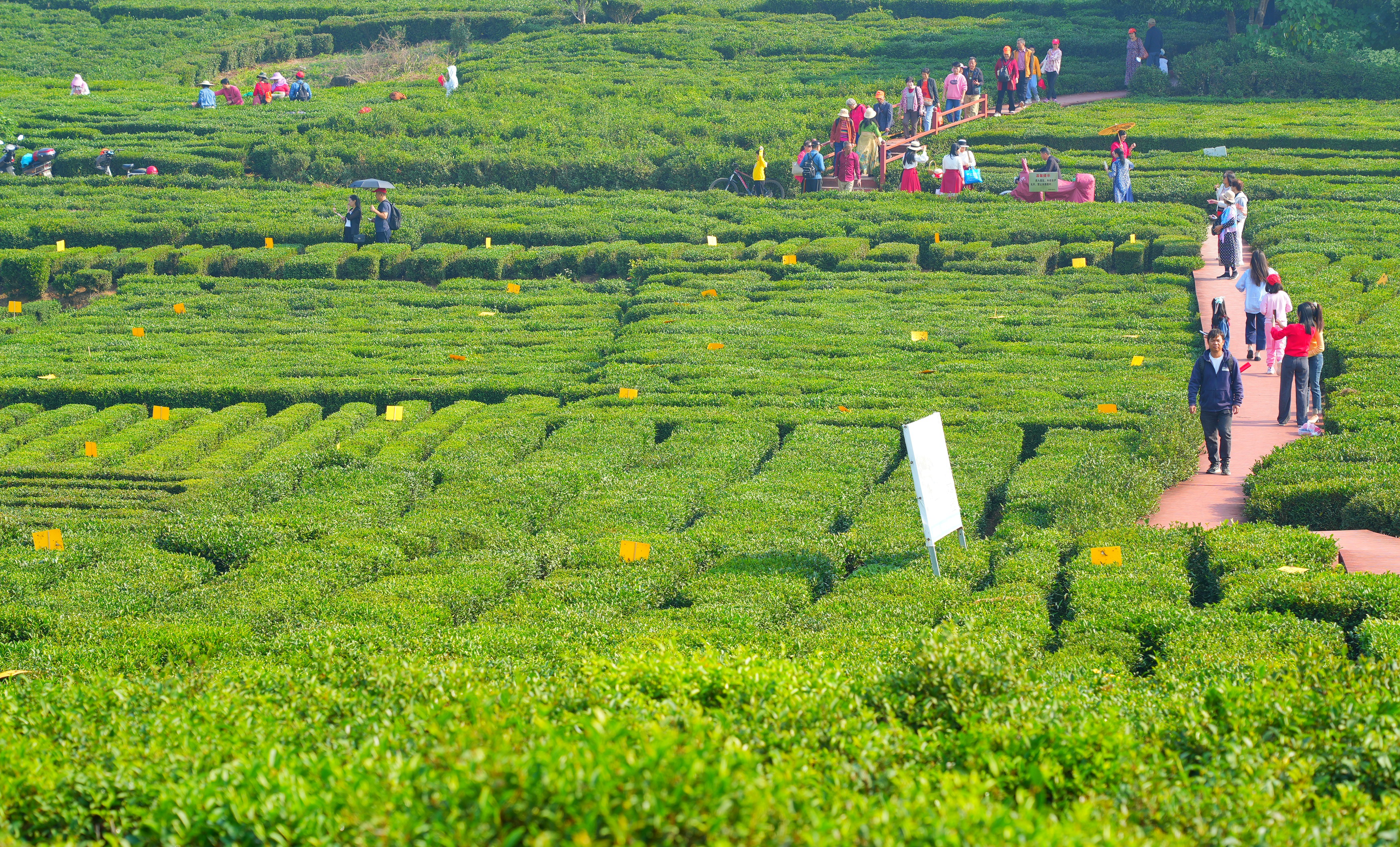 羅浮山下的柏塘萬(wàn)畝茶園吸引眾多游人打卡;葜萑?qǐng)?bào)記者朱金贊 楊建業(yè) 攝