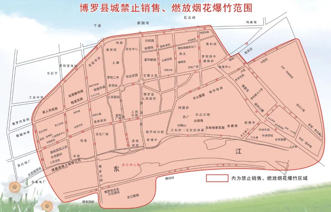 為進(jìn)一步做好博羅縣城禁止銷售和燃放煙花爆竹的管理工作,避免火災(zāi)、爆炸等傷亡事故的發(fā)生,保障人民群眾生命財(cái)產(chǎn)安全和維護(hù)社會(huì)秩序,根據(jù)《中華人民共和國(guó)治安管理處罰法》《煙花爆竹安全管理?xiàng)l例》等有關(guān)規(guī)定,現(xiàn)就禁止在縣城禁放區(qū)范圍內(nèi)銷售和燃放煙花爆竹有關(guān)事項(xiàng)通告如下: