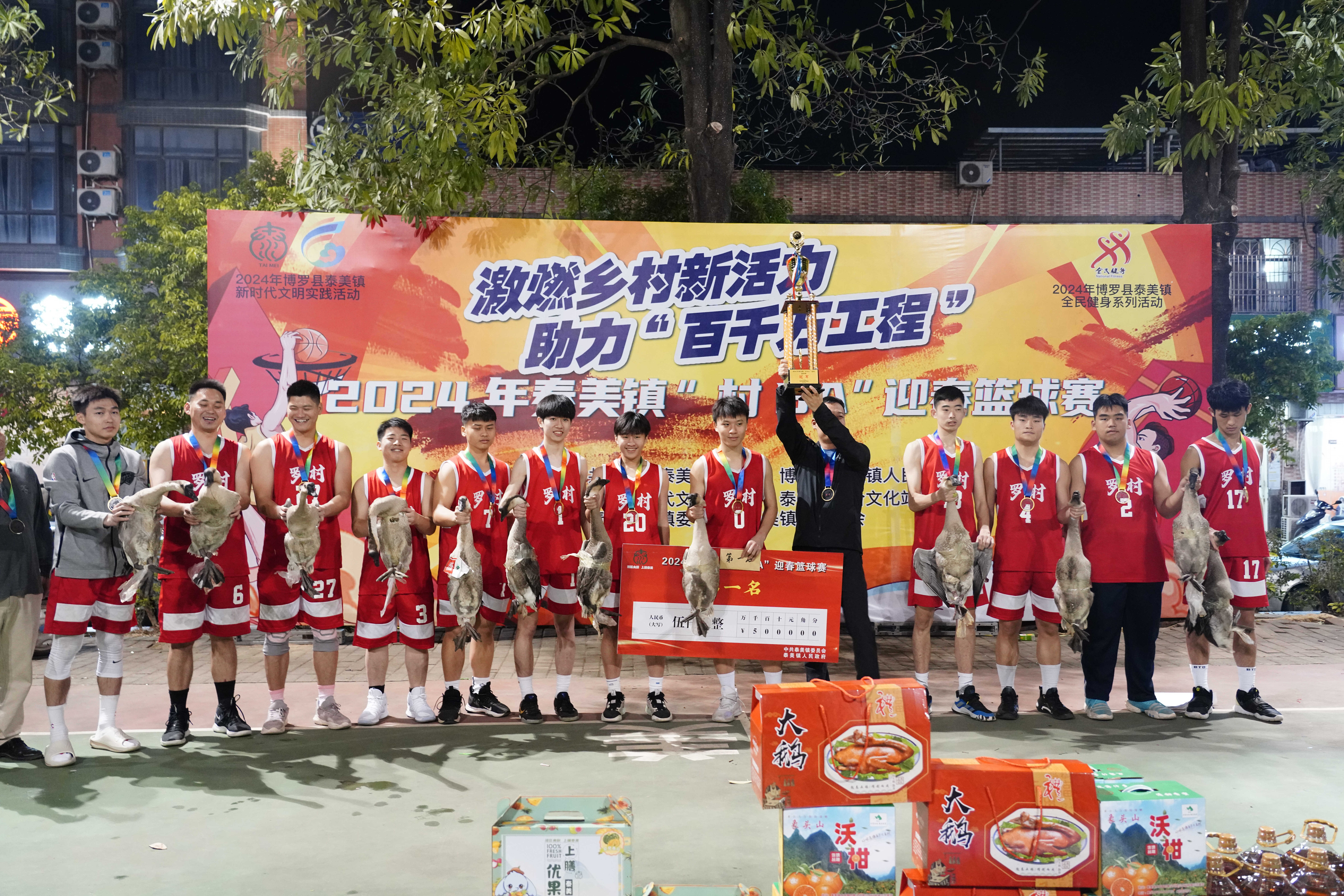 歷時8天,17支本土球隊,30余場精彩賽事,2月2日晚,以“激燃鄉(xiāng)村新活力 助力百千萬工程”為主題的2024年泰美鎮(zhèn)“村BA”迎春籃球賽,經(jīng)過激烈角逐,最終以羅村隊奪冠落下帷幕。