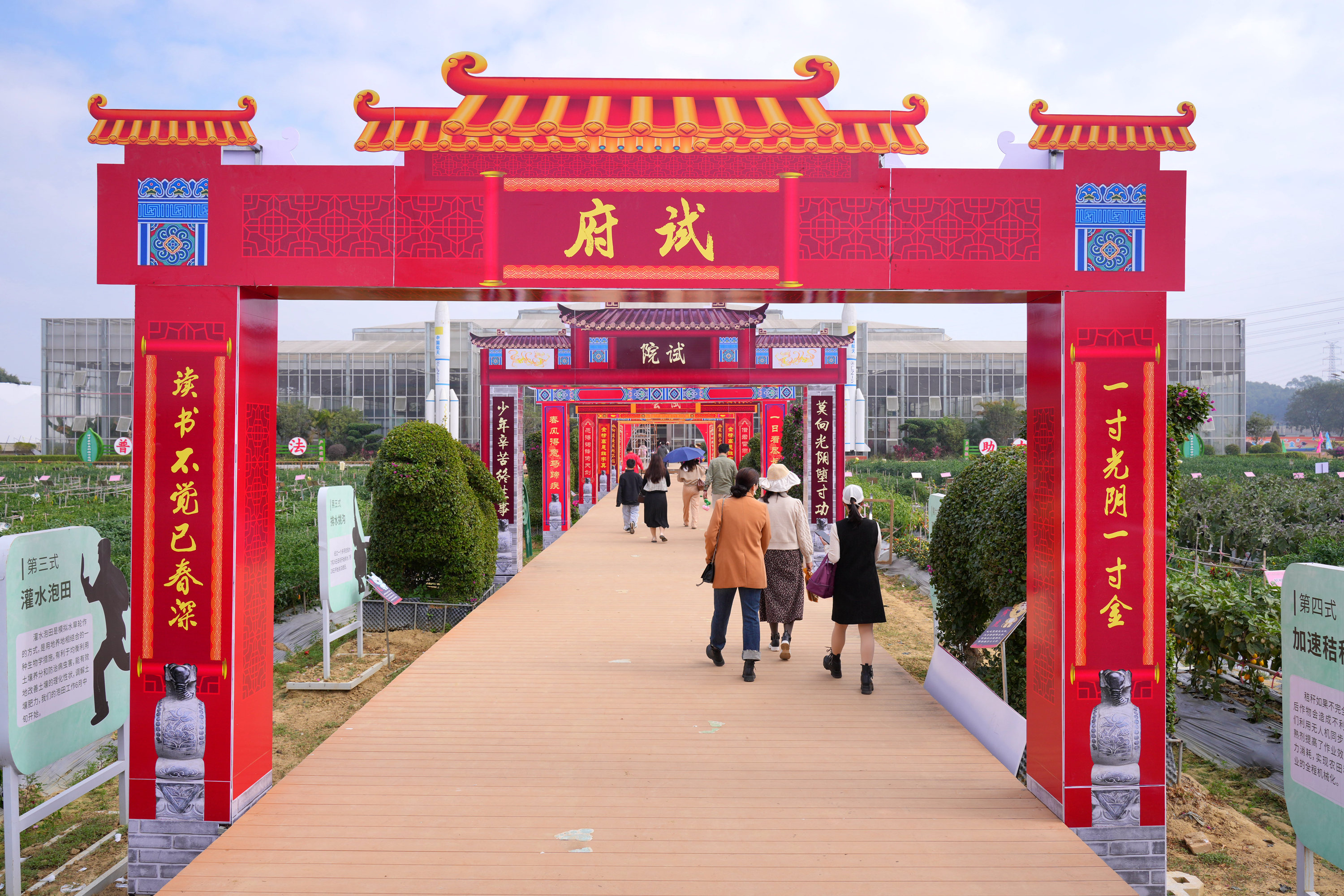 園區(qū)精心裝扮注入了龍年春節(jié)元素,特別打造了龍形花海。龍形花海面積約30畝,用各色鮮花打造出龍的形狀,具有令人震撼的視覺效果。狀元文化長(zhǎng)廊則讓游客了解中國(guó)科舉制度和狀元文化,如臨其境體驗(yàn)“狀元之路”。