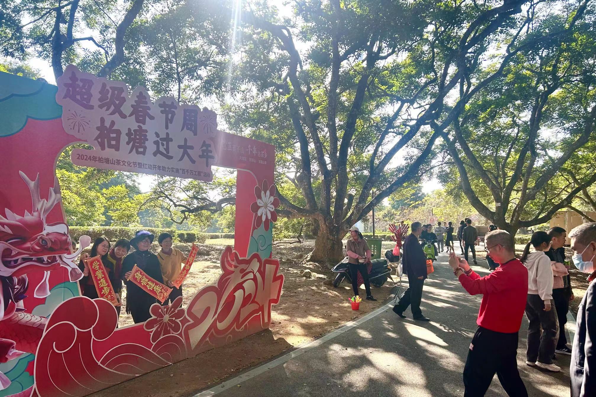 在古欖園附近,一家以茶文化體驗為主題,聯(lián)動周邊古欖園、網(wǎng)紅打卡點游玩的民宿綜合體——慢享欖園,正在成為游客在柏塘的民宿新寵。從空中俯瞰,以白色為主基調(diào)的數(shù)棟民宿樓與周邊的樹林、山脈相互映襯。各類新年祝福元素被設置在民宿的各個角落,營造了濃厚的喜慶氛圍。在民宿內(nèi)部,柏塘的特色茶文化元素融入農(nóng)特產(chǎn)品展示、壁畫等多個細節(jié)當中,讓游客沉浸式體驗茶文化,深入了解茶文化的深厚內(nèi)涵,感受茶文化的獨特魅力。