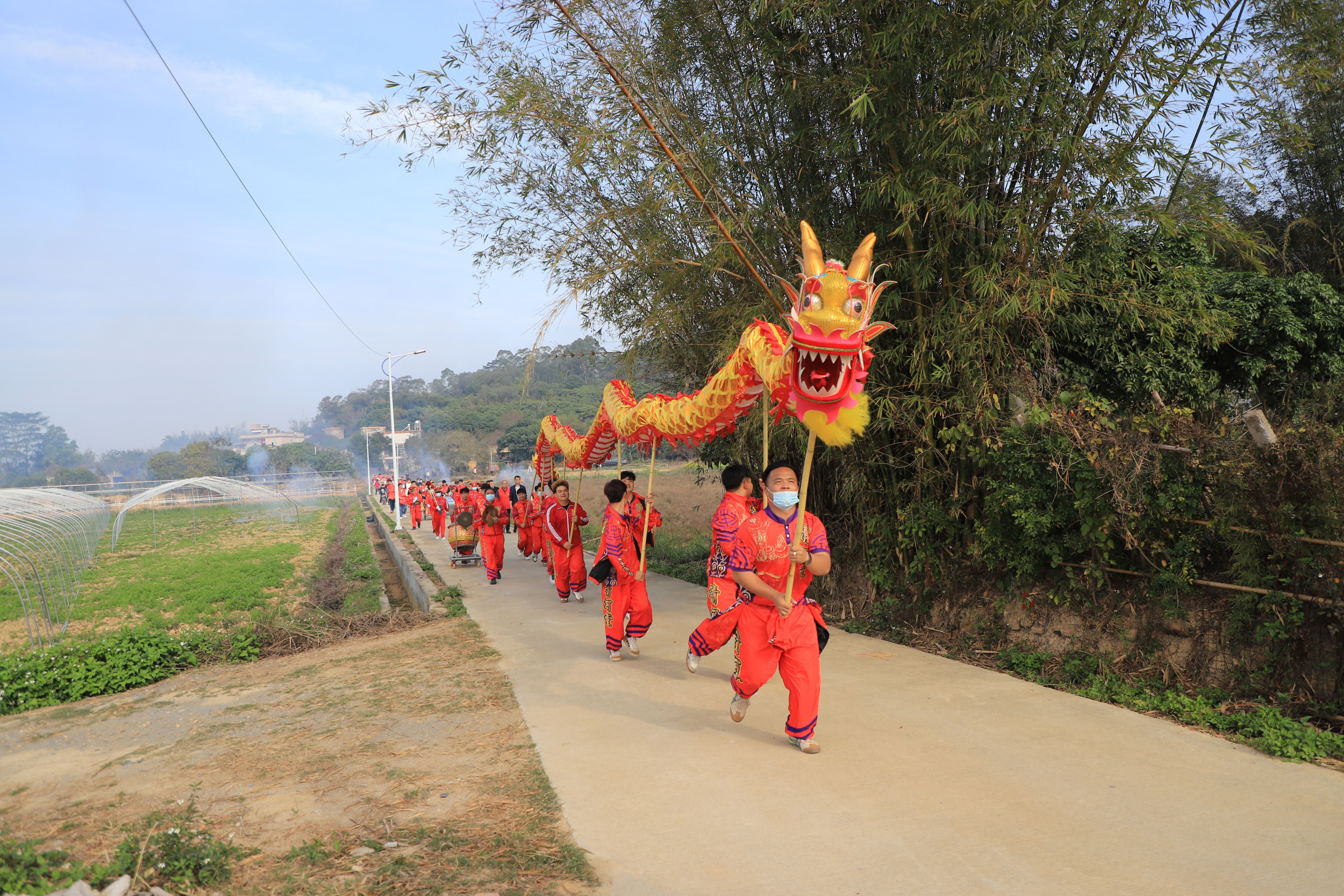 巡游隊伍繞村而行。