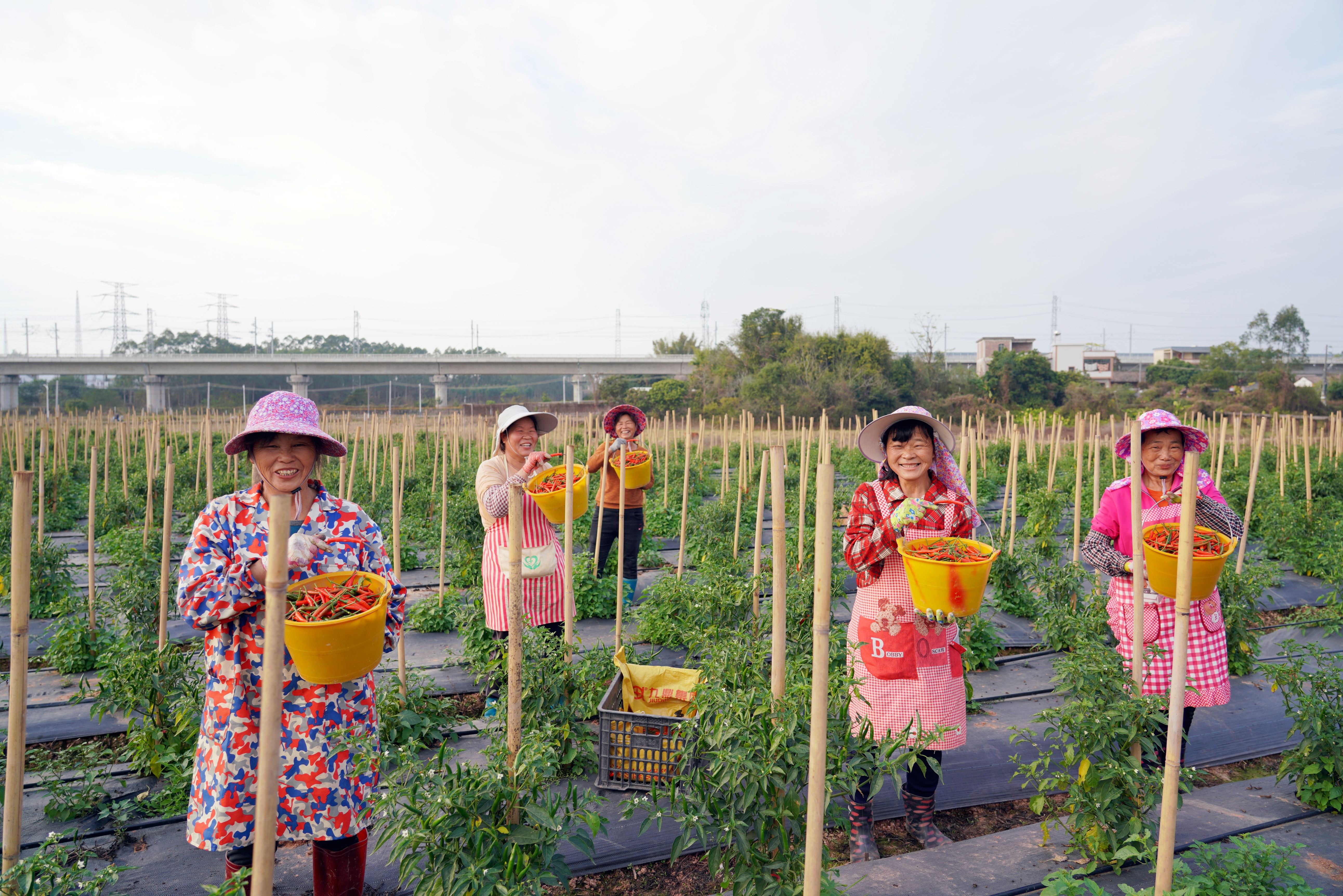 記者在種植基地看到,紅綠相間的辣椒掛滿枝頭。參與勞作的村民穿梭其間,火紅的辣椒和大家的笑臉交相輝映,滿是豐收的喜悅。