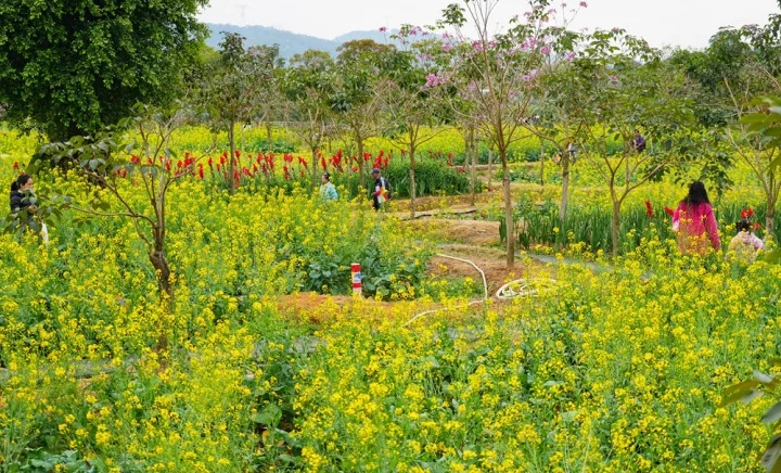 春暖花開(kāi)好時(shí)節(jié),郊游踏青正當(dāng)時(shí)。羅浮山下,博羅縣長(zhǎng)寧鎮(zhèn)下浪村浮生六季生態(tài)園里,有100畝金黃燦爛的油菜花正在盛開(kāi),油菜花海吸引眾多游客慕名而來(lái)。
