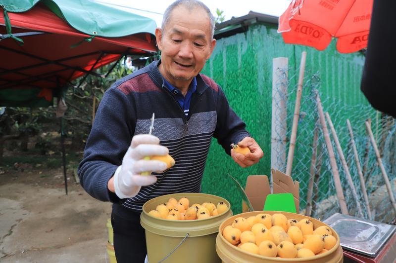 “多年前,家里的枇杷還要運(yùn)到市場銷售,這些年基本在園子里就賣完了!崩钍逭f,近期賞花的游人多,他們賞完花都要順路嘗下枇杷。
