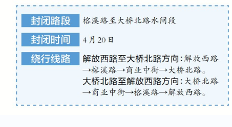 為榕溪路至大橋北路水閘段,過往車輛行人需繞行