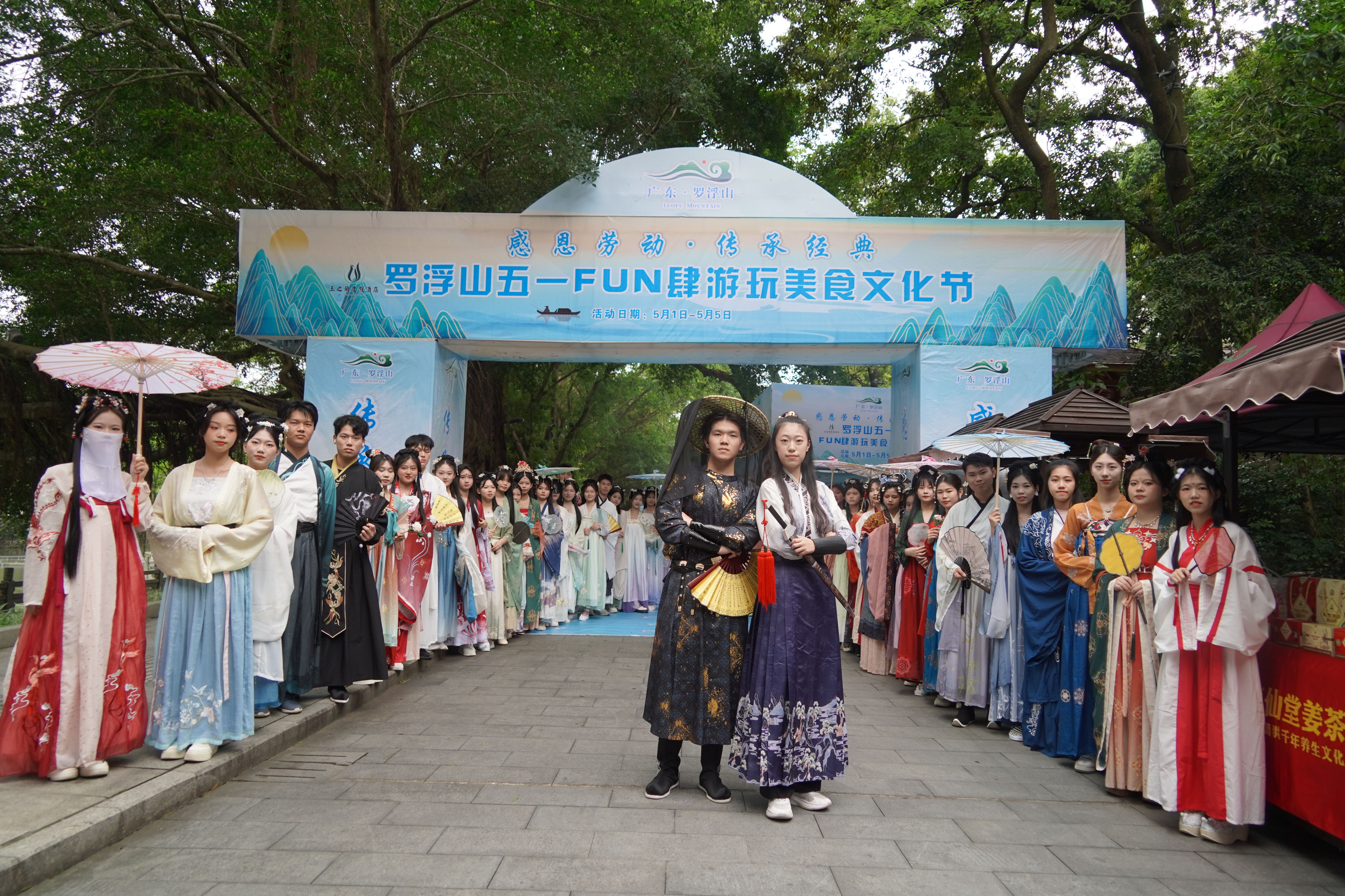 羅浮韻秀是景區(qū)掀起國潮風的一個縮影。國風巡游,韻味十足。一眾漢服佳人組成巡游方陣環(huán)羅浮山白蓮湖巡游,和游人一起感受中式浪漫。禮樂投壺、蹴鞠嬉戲、不倒翁互動,各類國潮游戲以“互動+視覺”的雙重驚艷,讓游客在歡笑聲中樂享“五一”假期。羅浮山是仙山,也是一座愛情圣山。今年,紅娘牽線火爆出圈。在羅浮山,羅浮紅娘相親舞臺在“五一”小長假期間隆情上演。連日來,說媒現(xiàn)場人潮涌動,臺上紅娘親切、幽默的語言,讓現(xiàn)場氣氛快速升溫,打開青年男女掩藏于內(nèi)心的情感按鈕,掀起了現(xiàn)場的相親潮。