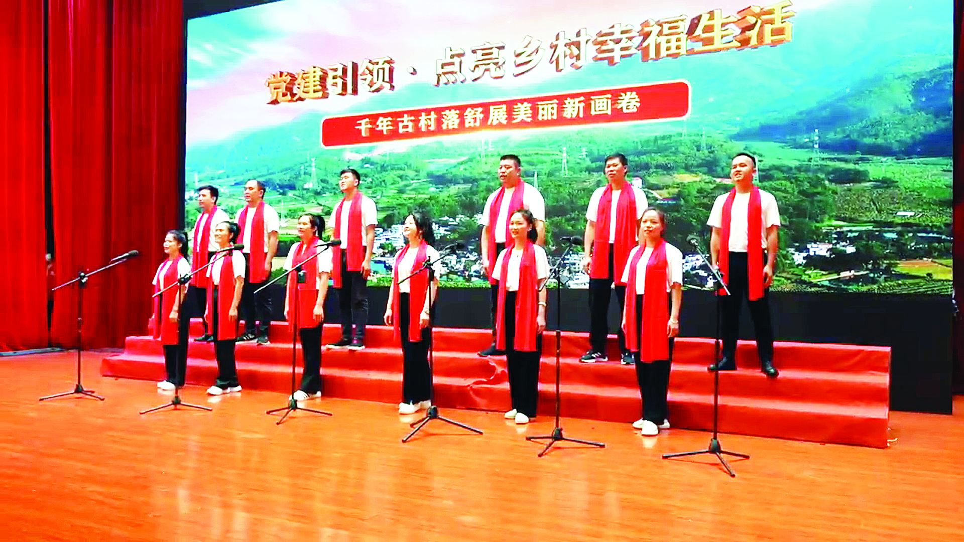 “冬賞梅夏采蓮,烏欖古木韻流淌”“彩蝶縈繞茶歌飛揚,村前小道芭蕉雨聲”優(yōu)美的歌詞里,述說著新作塘村的村貌特色。來自新作塘村的匡玉蘭,當天與40多位村民一起登臺表演,“村歌比賽這種形式很好,大家喜聞樂見!