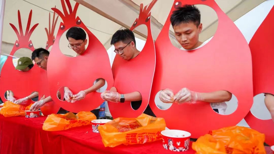 趣味龍蝦節(jié),好食又好玩。當(dāng)天活動(dòng)設(shè)置了多種以小龍蝦為主題的游戲。蝦鉗投籃、蝦猜大賽、趣釣小龍蝦、扒蝦王大賽……街坊們積極參與各種趣味游戲,現(xiàn)場(chǎng)不時(shí)爆發(fā)出一陣陣歡樂(lè)的笑聲。其中,最有趣的當(dāng)屬釣蝦游戲。來(lái)自泰美本地的稻田養(yǎng)殖小龍蝦被放置在大水池中,街坊們每每釣起一只小龍蝦,都會(huì)引來(lái)一陣歡呼聲。