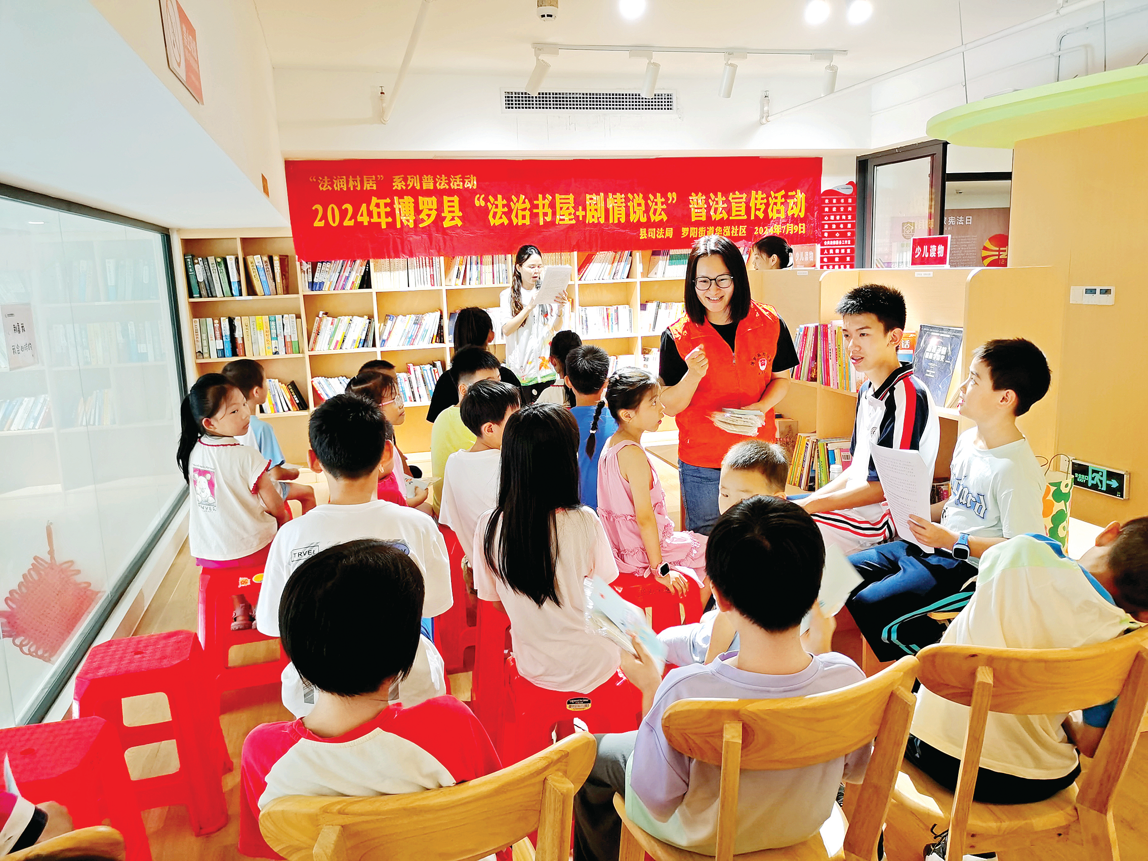 日前,博羅縣司法局聯(lián)合羅陽(yáng)街道華泓社區(qū)在華泓社區(qū)法治書屋開(kāi)展以“法治書屋+劇情說(shuō)法”為主題的“法潤(rùn)村居”系列普法活動(dòng),通過(guò)輕松、詼諧的劇情演繹,生動(dòng)形象地向正在過(guò)暑假的青少年講述法治故事,傳遞法治能量。