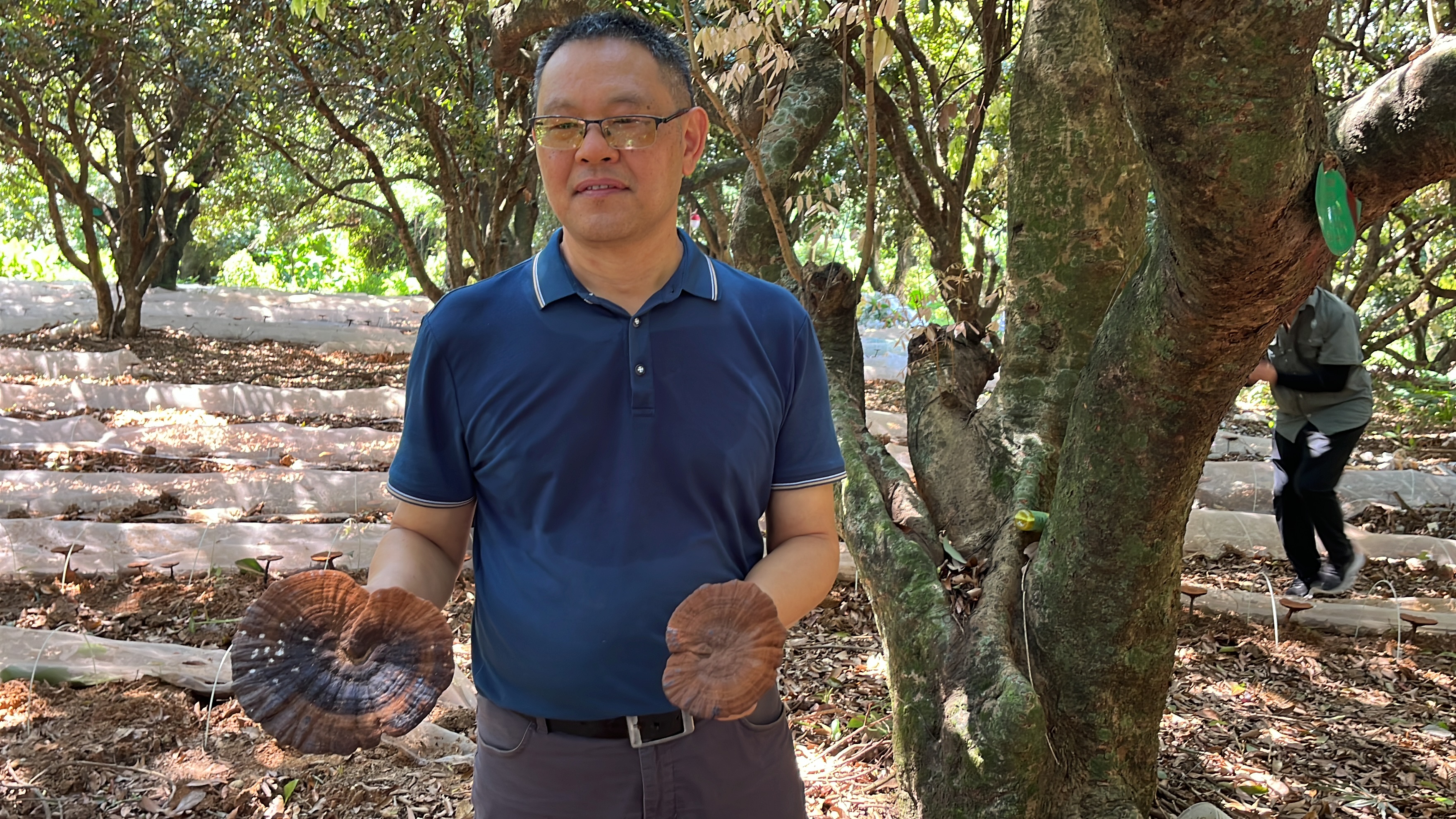 就在3個多月前,59歲的鐘錦華怎么也想不到,這荔枝林下樹林陰翳的,居然能種出這么好的靈芝。看著碩果累累的靈芝仙草,他開始由衷地佩服起林老師來。