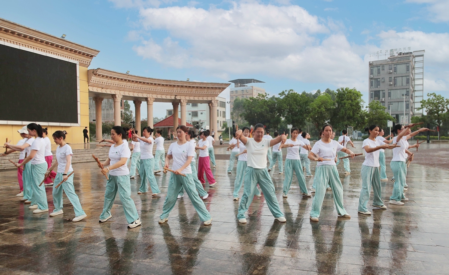 每天下午下班后,在麻陂鎮(zhèn)新時代文明實踐所前,總有一幫女青年在認(rèn)真訓(xùn)練。她們踏著鏗鏘鼓點,擺動手腕,手中的英歌槌有節(jié)奏地敲打著,舞姿輕盈、腳步輕快活躍。盛夏時節(jié),太陽炙烤著大地,地板熱浪逼人。不一會,她們就已汗流浹背。從5月到8月,從初夏到盛夏再到初秋,一練就是3個多月,這樣的練習(xí)仍將持續(xù)。