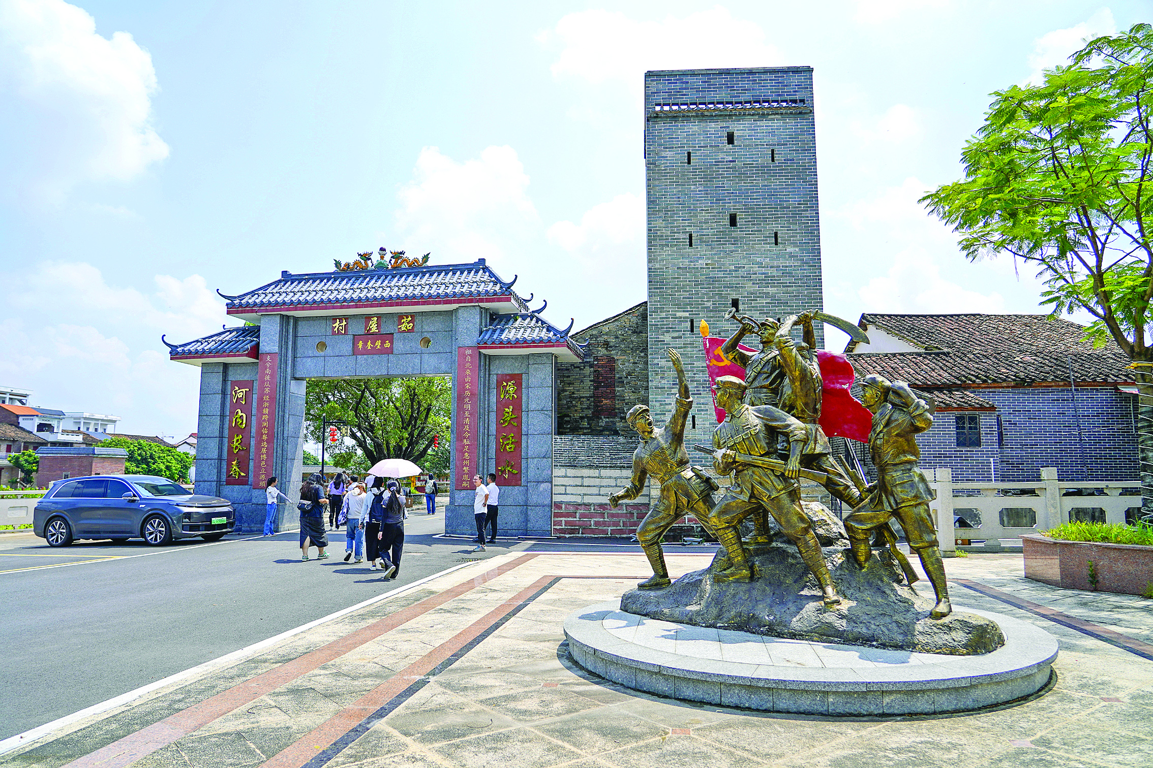 百年古樹枝繁葉茂、水上棧道古色古香、水車長(zhǎng)廊典雅別致……在石灣鎮(zhèn)源頭村茹屋村民小組,紅色水鄉(xiāng)的魅力讓人沉醉?谷諔(zhàn)爭(zhēng)時(shí)期,茹屋村民小組是東江縱隊(duì)獨(dú)立第二大隊(duì)進(jìn)行革命活動(dòng)的重要據(jù)點(diǎn),茹屋之戰(zhàn)更是當(dāng)?shù)乜箲?zhàn)史的光輝一頁。紅色資源是最寶貴的精神財(cái)富。源頭村黨委書記、村委會(huì)主任李茹櫟旒介紹,近年來,源頭村充分挖掘紅色文化資源,將生態(tài)、文化等要素融合,通過景觀打造、農(nóng)房風(fēng)貌提升、植綠增綠等,全面提升村莊顏值。
