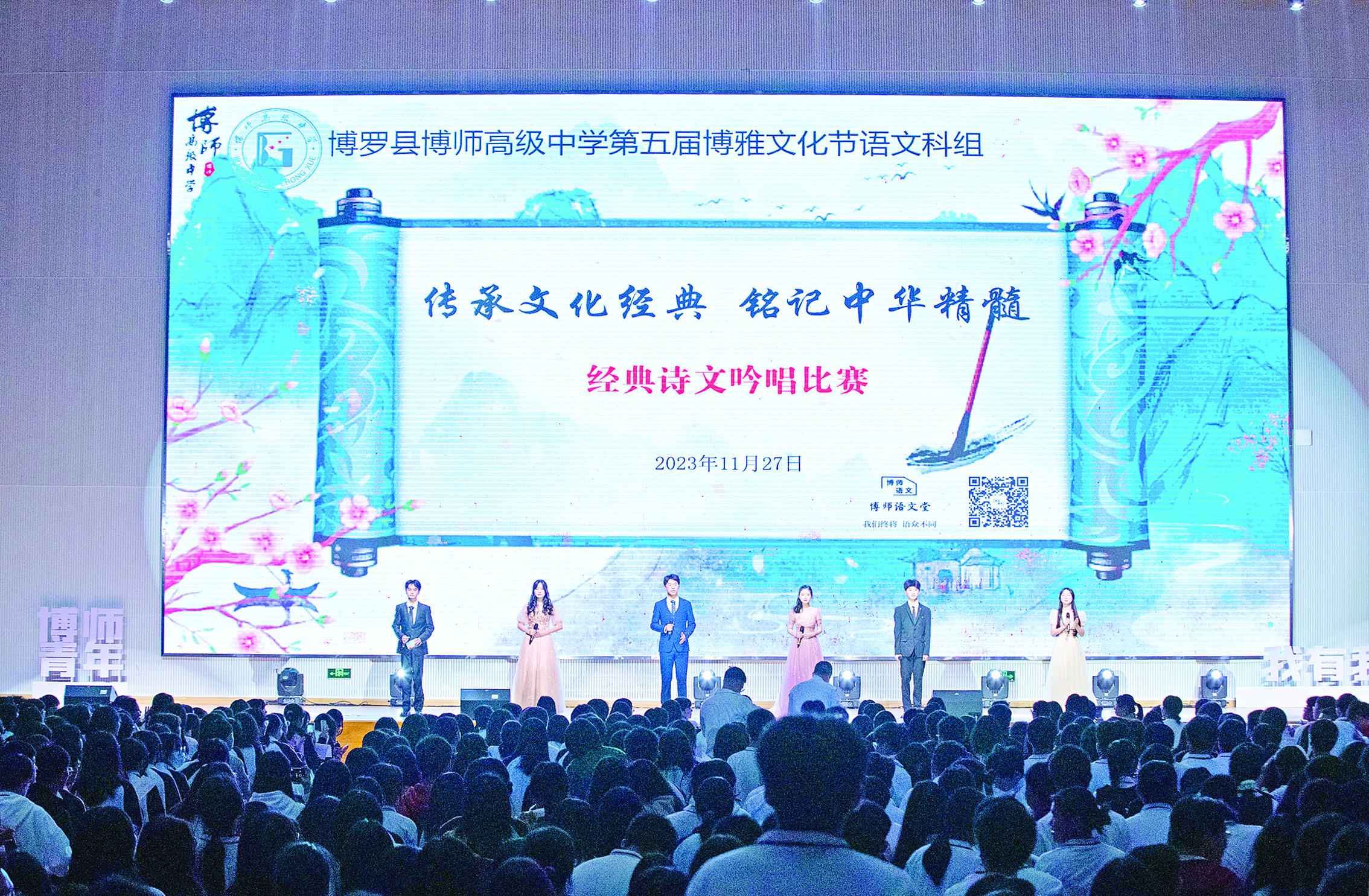 12月的博師高級中學是五彩斑斕的。每年這個時候,學生們最期待的“博雅文化節(jié)”拉開帷幕,書香節(jié)、體育節(jié)、音樂節(jié)、科技節(jié)、美術(shù)節(jié)“五節(jié)”并行、“五育”并舉;顒悠陂g,主題講座、知識競賽、詩詞演唱、實驗操作、趣味活動等輪番上陣,同學們花樣“整活”、釋放自我、展現(xiàn)才華,留下熱情的歌舞、雋永的詩篇,也留下了關(guān)于青春最熱烈的記憶。