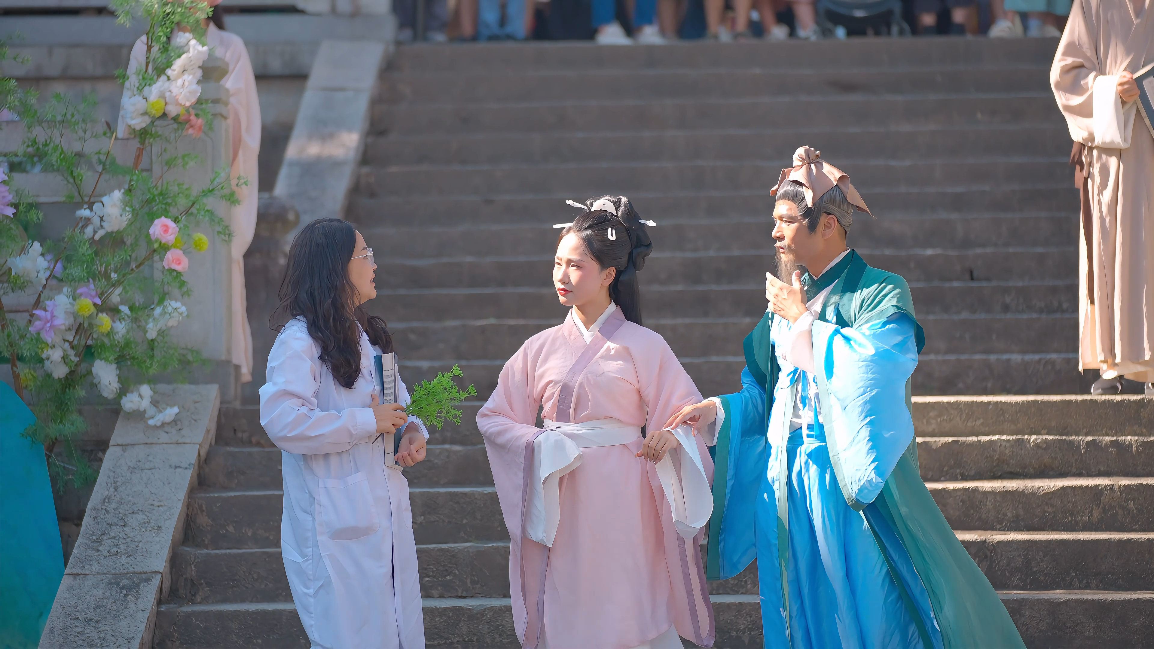 在情節(jié)設(shè)計(jì)中,主創(chuàng)人員在創(chuàng)作過程中頗注巧思。劇中,葛洪與屠呦呦穿越千年,出現(xiàn)在同一時空,是一大亮點(diǎn)!拔覀儗iT設(shè)計(jì)了葛洪與屠呦呦古今穿越的時空對話,讓古老的中醫(yī)藥智慧與現(xiàn)代醫(yī)學(xué)成就跨越千年相遇,表達(dá)了葛洪文化、中醫(yī)藥文化的一脈相承!痹ㄈA說,這幾天的表演中,他們收到了很多游客表達(dá)的贊賞,尤其是小朋友特別熱情,興奮地與演員們合影。“很高興大家喜歡這部劇,希望這是一個種子,在更多人心目中種下葛洪文化、中醫(yī)藥文化的種子。”
