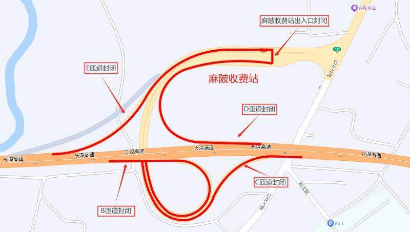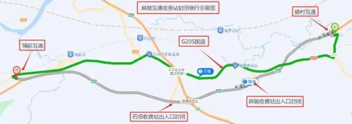 交通管制期間,長深高速北往南行駛往博羅縣麻陂鎮(zhèn)的車輛,請?zhí)崆皬钠仪笆召M站下高速繞行國道G205前往;長深高速南往北行駛前往博羅縣麻陂鎮(zhèn)的車輛,請?zhí)崆皬臈畲迨召M站下高速繞行國道G205前往。