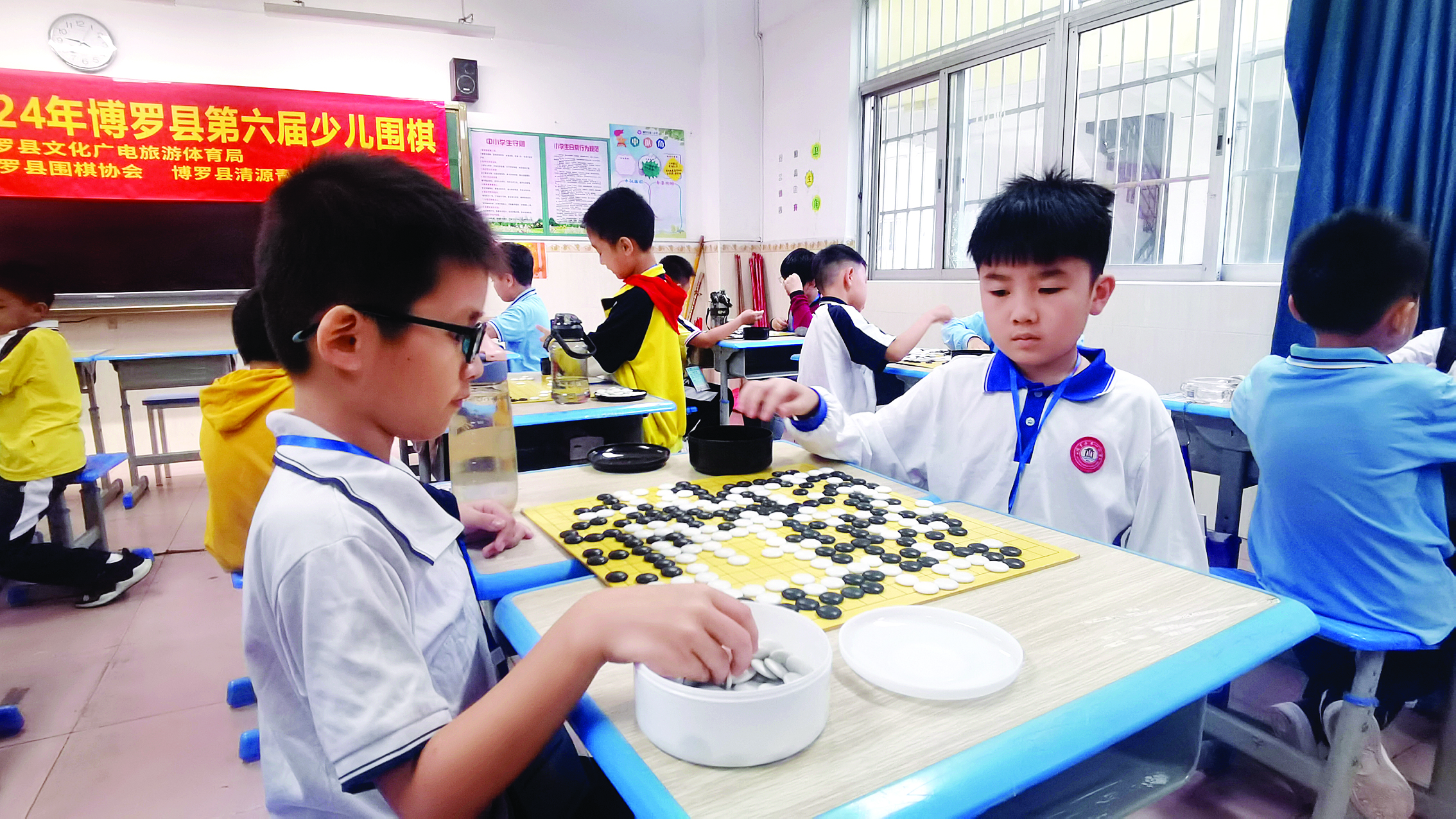 校園圍棋活動的開展是博羅圍棋運動的特色之一。該縣以圍棋特色教學(xué)、圍棋規(guī)范賽事為引領(lǐng),帶動各級各類學(xué)校、幼兒園圍棋運動項目的發(fā)展,形成濃厚的圍棋文化氛圍。博羅縣第一小學(xué)是其中的杰出代表。2015年,博羅縣第一小學(xué)率先將圍棋列入校本課程,聘請專業(yè)機構(gòu)編寫校本教材,配備專業(yè)圍棋教室,創(chuàng)建學(xué)!吧倌陣寰銟凡俊薄2021年,該校獲評首批廣東省圍棋特色學(xué)校。該校有關(guān)負責(zé)人介紹,通過圍棋,孩子們不僅體會到傳統(tǒng)文化的內(nèi)涵,還在潛移默化中提高心理承受能力、抗挫折能力。