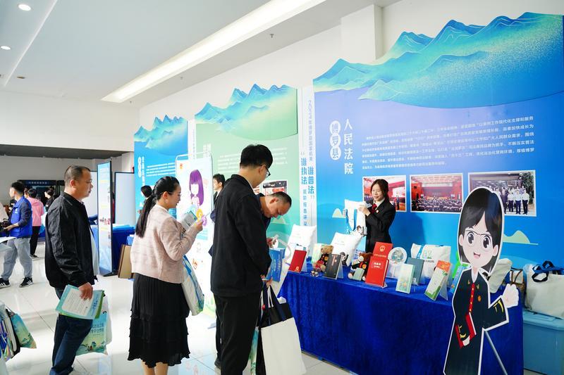 普法展示區(qū)里,被評(píng)議單位向參會(huì)人員科普相關(guān)職能領(lǐng)域法律知識(shí)。