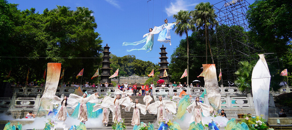 近年來(lái),羅浮山景區(qū)積極以“文旅+非遺”為重要抓手,提高游客對(duì)非遺文化的了解,讓更多的人參與到非遺文化的傳承與發(fā)展中。在非遺文化活動(dòng)組織方面,通過(guò)演藝活化非遺魅力,打造“非遺+演藝”業(yè)態(tài)。推出以省級(jí)非遺民間文學(xué)“葛洪傳說(shuō)”為藍(lán)本的大型實(shí)景情景劇《道醫(yī)濟(jì)世》,將其價(jià)值進(jìn)行當(dāng)代表達(dá),國(guó)慶上演期間受到了廣大游客的歡迎和認(rèn)可。同時(shí)推進(jìn)非遺進(jìn)景區(qū),引進(jìn)周邊非遺節(jié)目進(jìn)景區(qū)展演,讓游客感受當(dāng)?shù)孛耧L(fēng)民俗。