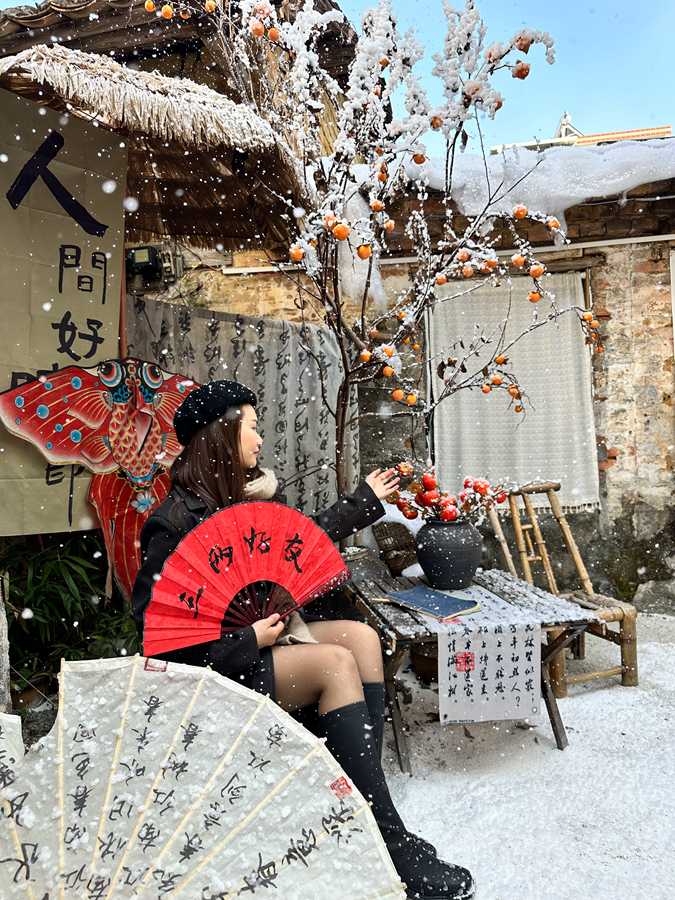 “‘雪’應(yīng)該是很多廣東人的一個(gè)執(zhí)念,在網(wǎng)上經(jīng)常能看到人造雪景,但是融合新中式風(fēng)格的雪景卻很少!崩钗木咏榻B說(shuō),院子內(nèi)的柿子樹(shù)、旗袍、古裝等中式元素是很多國(guó)人的集體記憶,而與雪景的結(jié)合恰好與冬天的時(shí)令相適應(yīng)!把┚巴瞥鲆詠(lái),吸引了很多年輕人打卡拍照。”