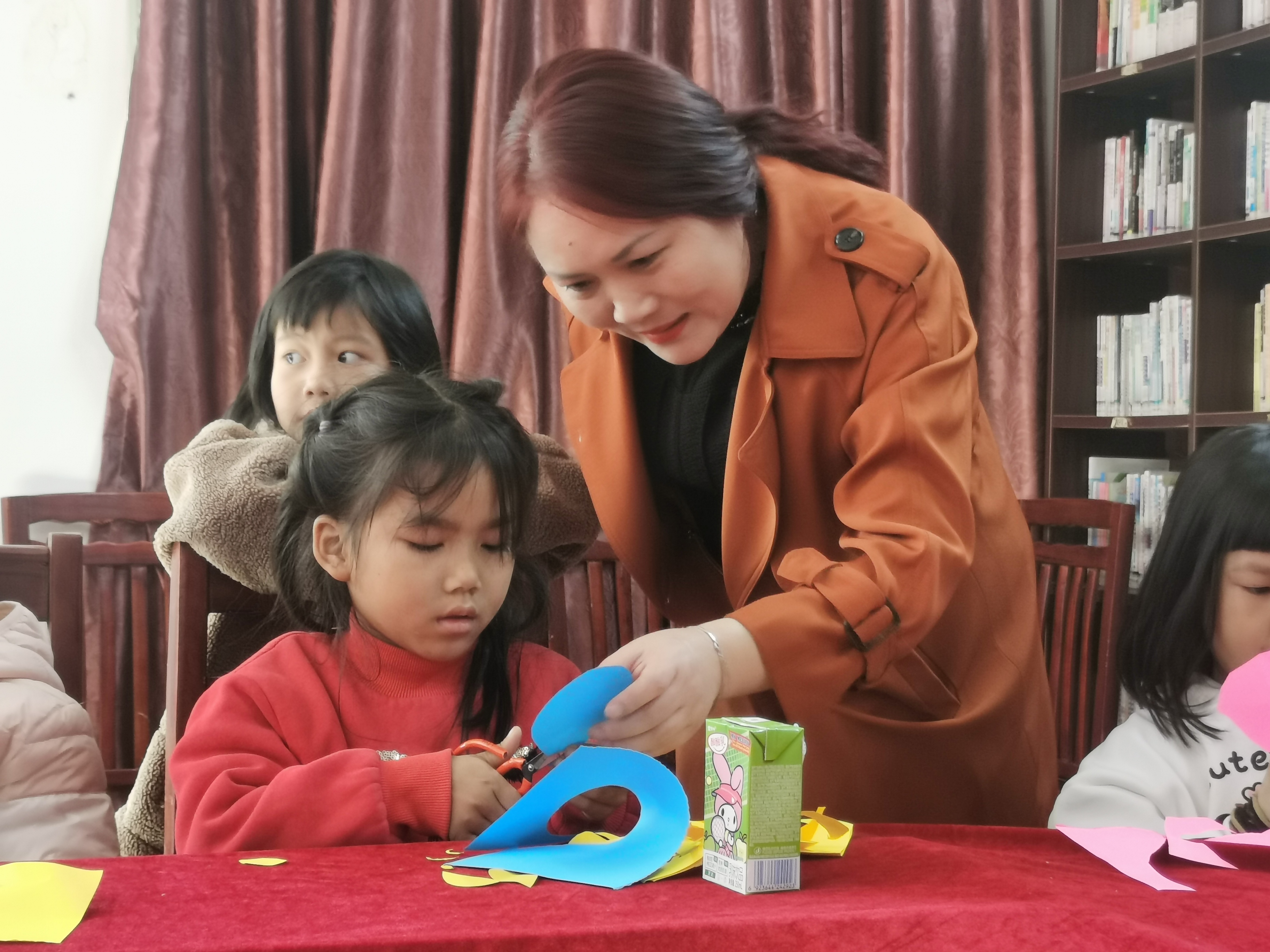 小朋友在練習剪紙;葜萑請笥浾咧禧愭 攝