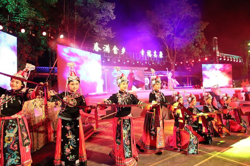 2月11日晚,“春滿畬鄉(xiāng) 幸福安康”——2025全國(guó)春節(jié)“村晚”示范展示活動(dòng)在博羅縣橫河鎮(zhèn)嶂背畬族村舉行。獨(dú)具音韻美的畬族歌曲,身著絢麗鳳凰服、頭戴精美鳳冠的畬族姑娘跳起了歡快的竹竿舞,以熱情的敬酒禮款待賓客,交織出一幅幅畬族風(fēng)情的生動(dòng)畫(huà)面……活動(dòng)通過(guò)“線下沉浸體驗(yàn)+云端傳播”的模式,邀全國(guó)觀眾共品畬鄉(xiāng)年味,為鄉(xiāng)村振興注入文化動(dòng)能。