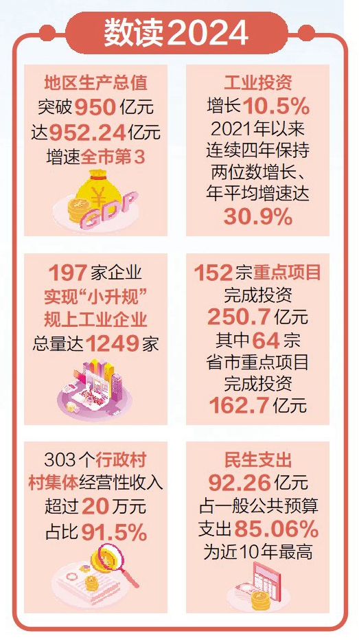 正是有了這份向上向強向優(yōu)的決心與斗志,2024年,博羅在練好內(nèi)功中爭先進位,交出一份頂壓前行、量質(zhì)齊升、不斷向上突破的發(fā)展答卷:全縣地區(qū)生產(chǎn)總值突破950億元,達952.24億元;全國百強縣再進3位,最新排名66位,2022年、2023年、2024年連續(xù)三年共進位23名。