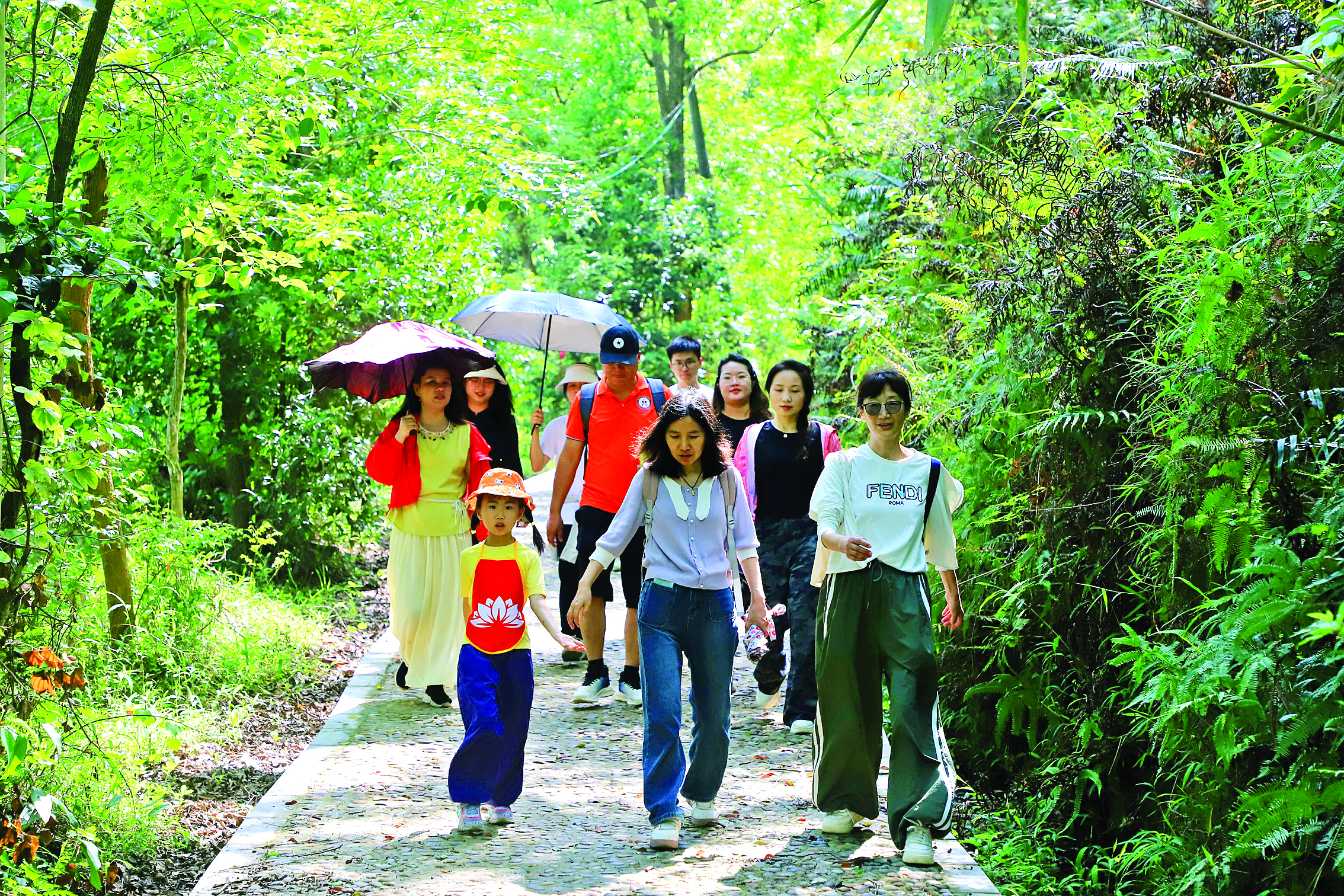 戶外運(yùn)動(dòng)愛好者在雞籠山村徒步。