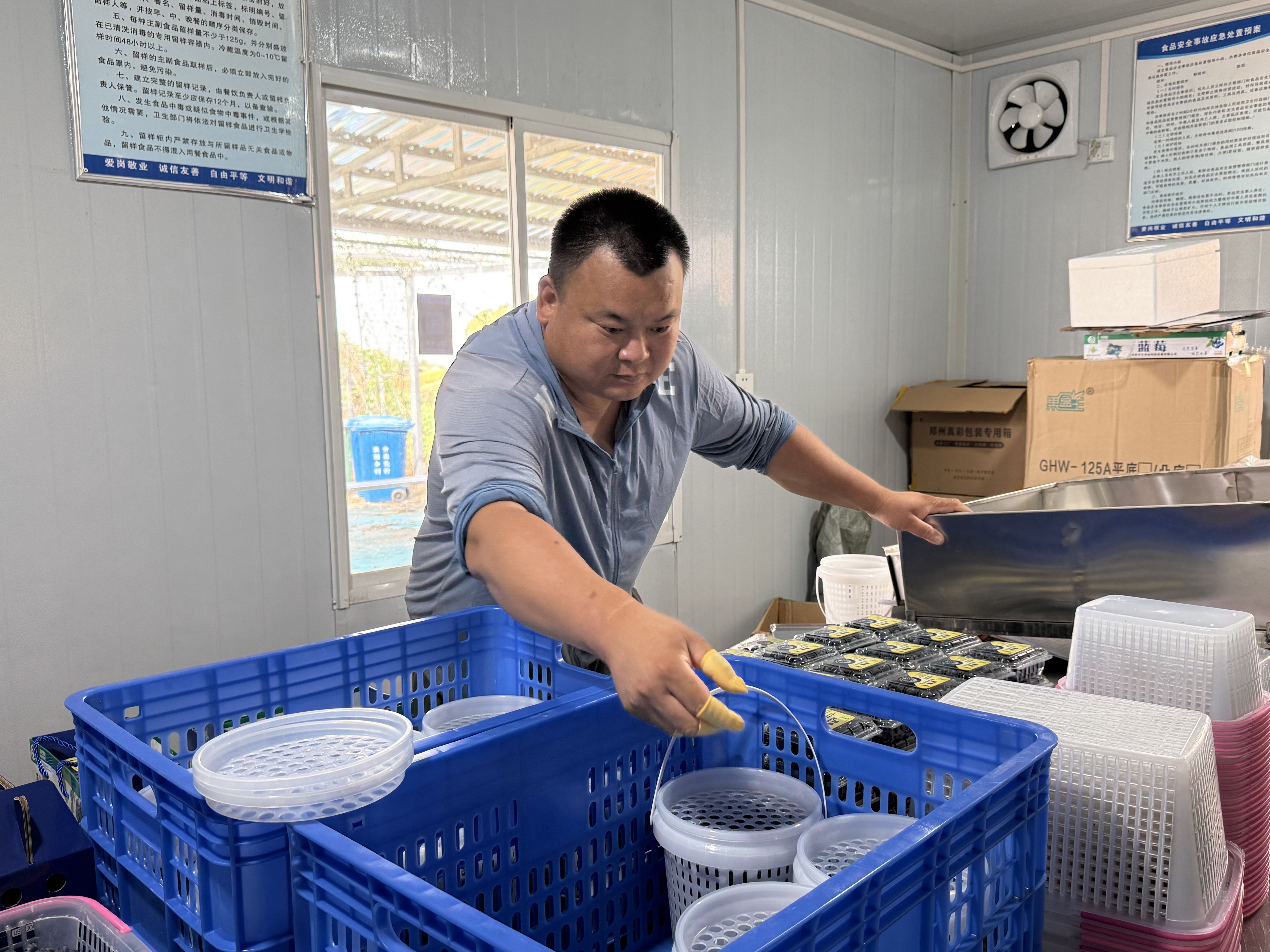 工人在包裝藍莓。