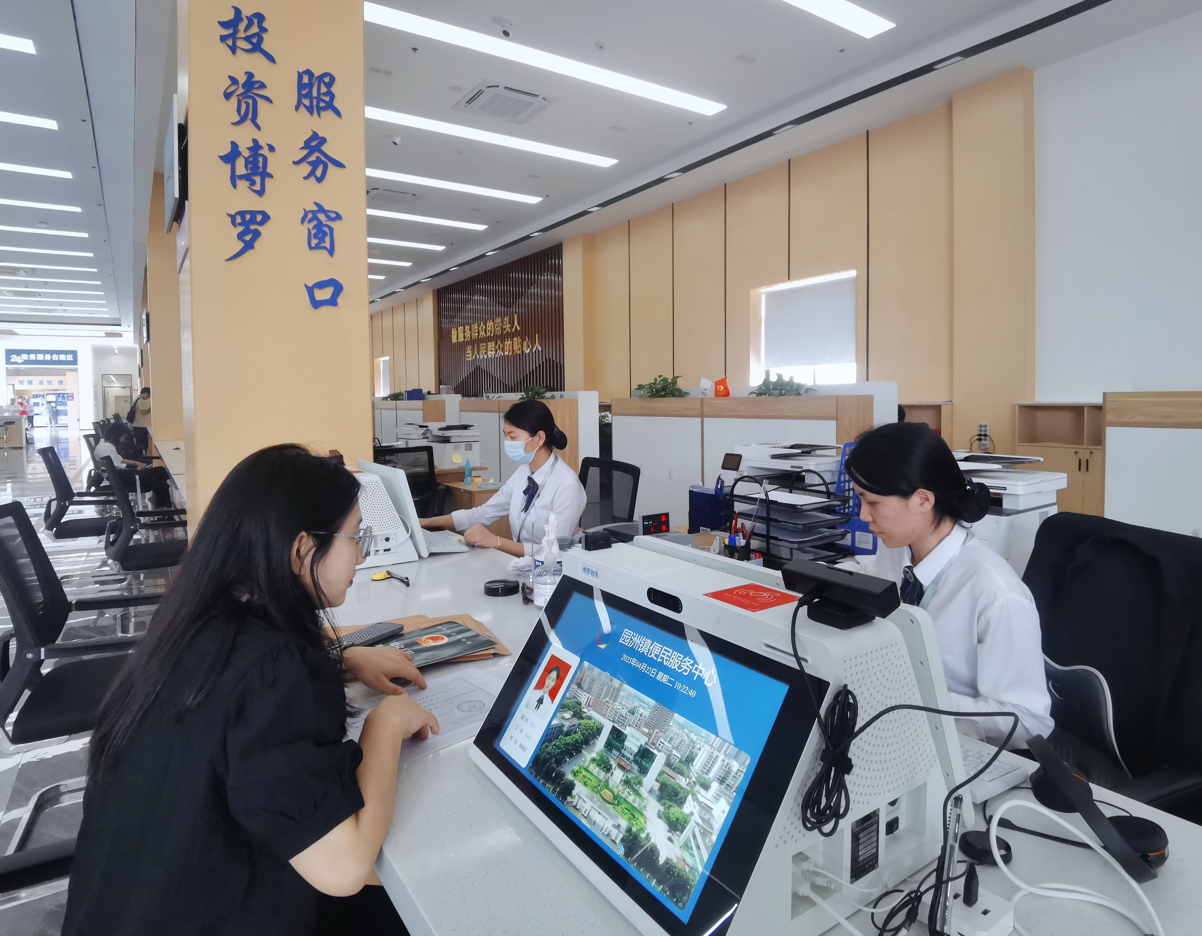 市民在園洲鎮(zhèn)便民服務(wù)中心辦理業(yè)務(wù)。