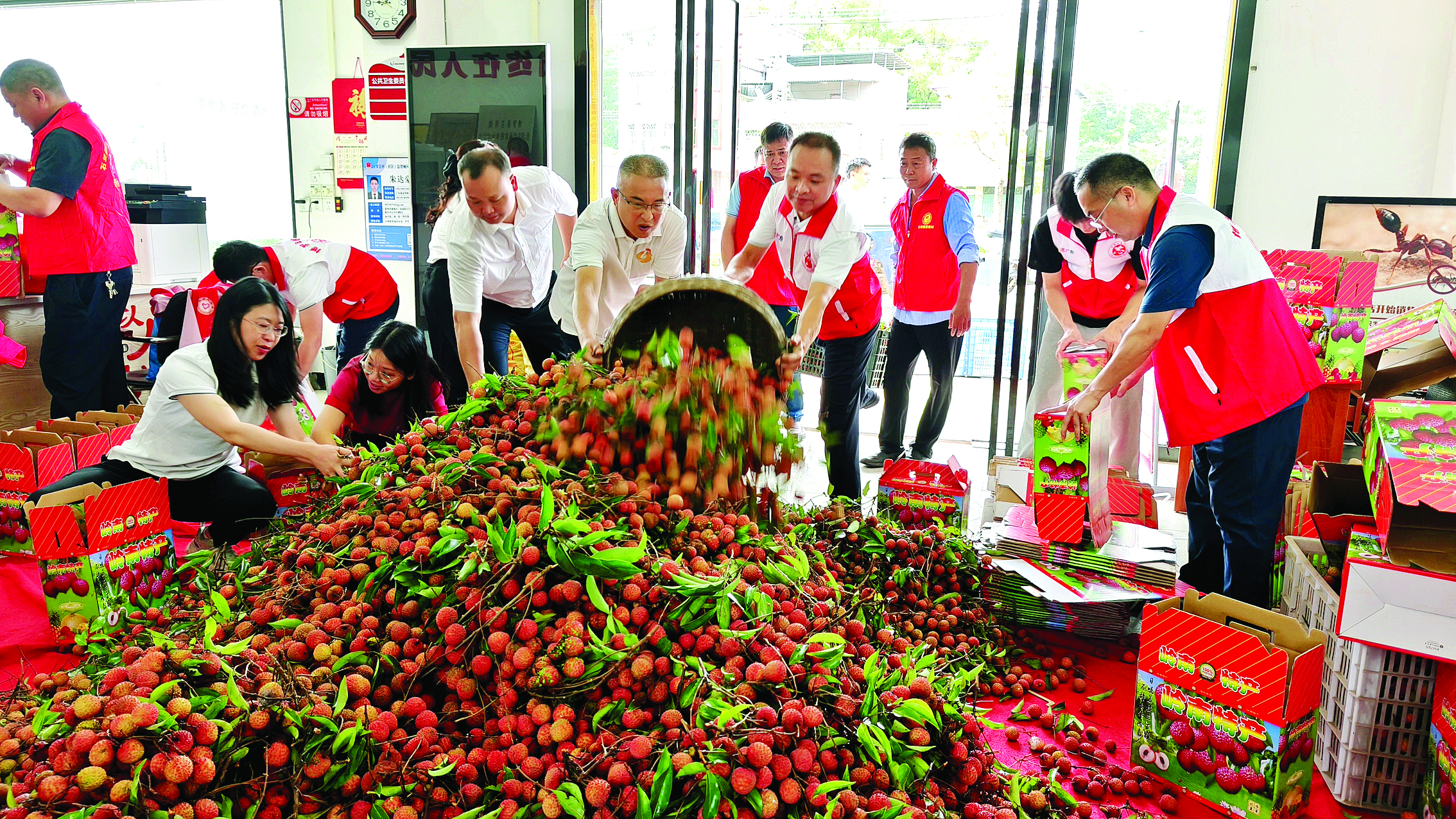 干群齊心助力荔枝銷售;葜萑請笥浾呃钛辔 攝