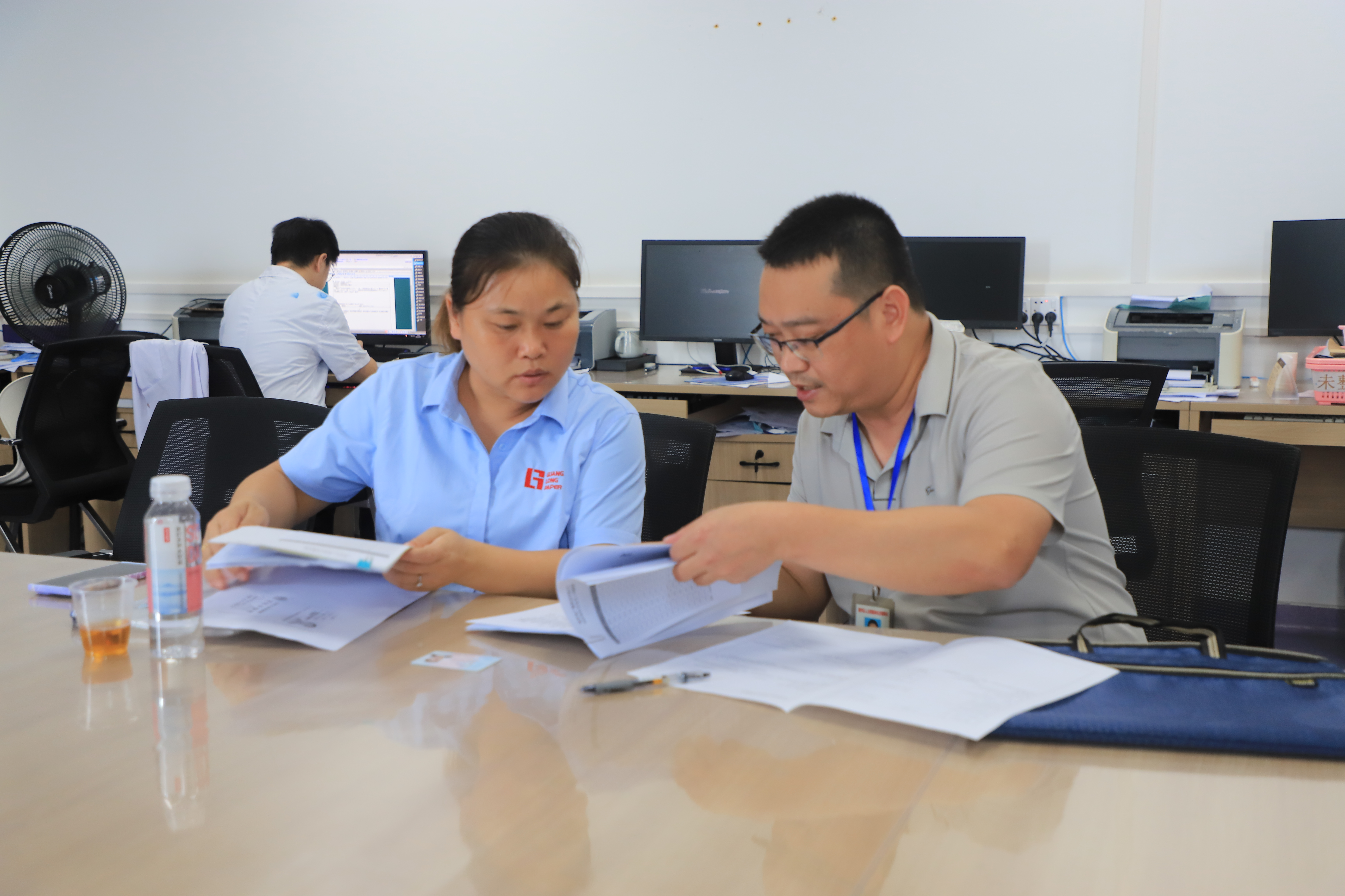 博羅縣人社局工作人員現(xiàn)場指導企業(yè)人員辦理工傷認定。