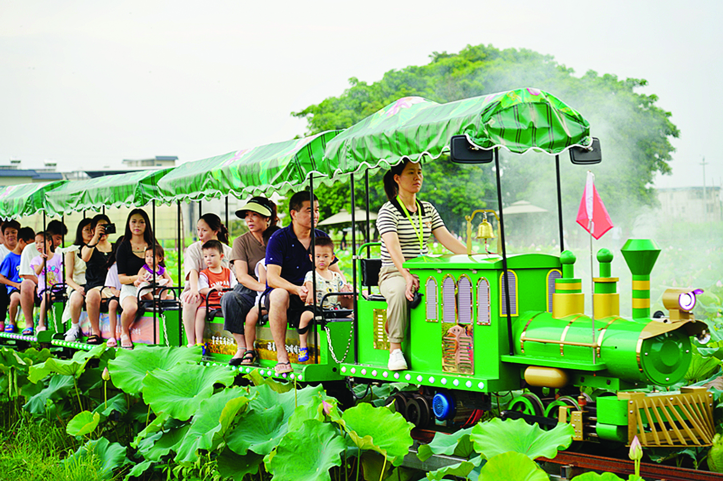 三嘉村“荷田小火車”項(xiàng)目成為游客爭相打卡的熱點(diǎn)。石壩鎮(zhèn)供圖