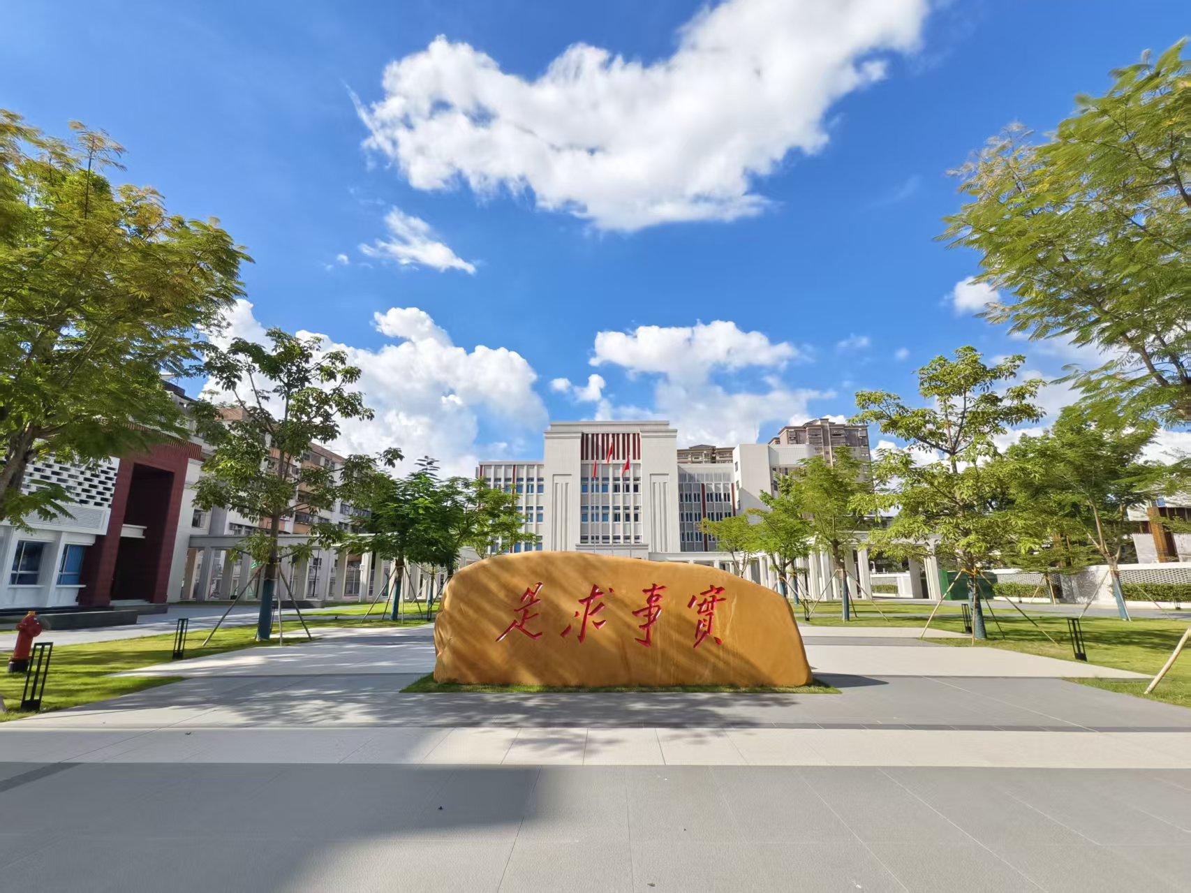 從大門進入,“實事求是”四字石刻蒼勁有力。繞過石刻,現(xiàn)代化的花園設計一覽無余,綠油油的草地、休閑小路、風雨長廊……舒適的戶外環(huán)境,可以讓學員在充電培訓之余,得到更好的休息與放松。