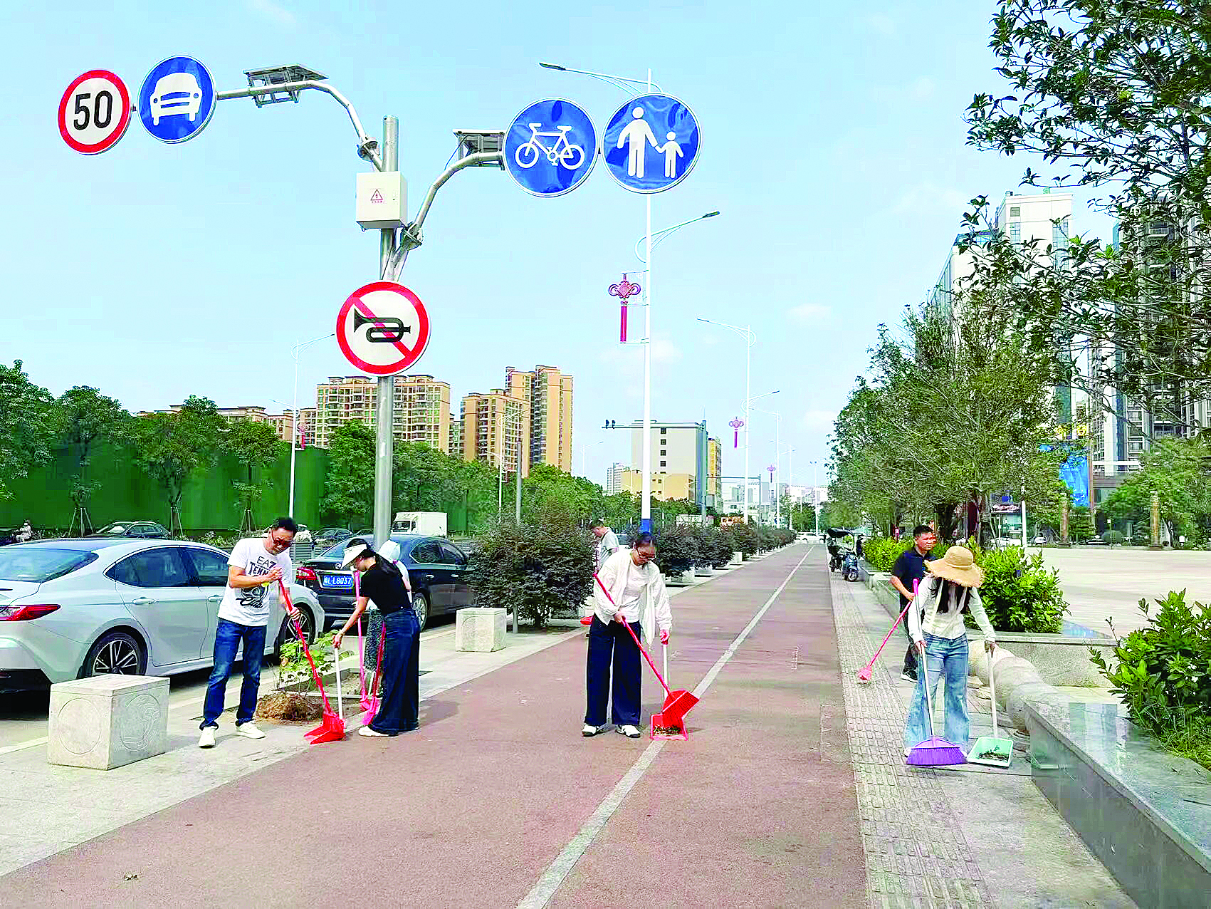 龍溪街道干部群眾清掃衛(wèi)生;葜萑請笥浾呃钛辔 通訊員龍溪宣 攝