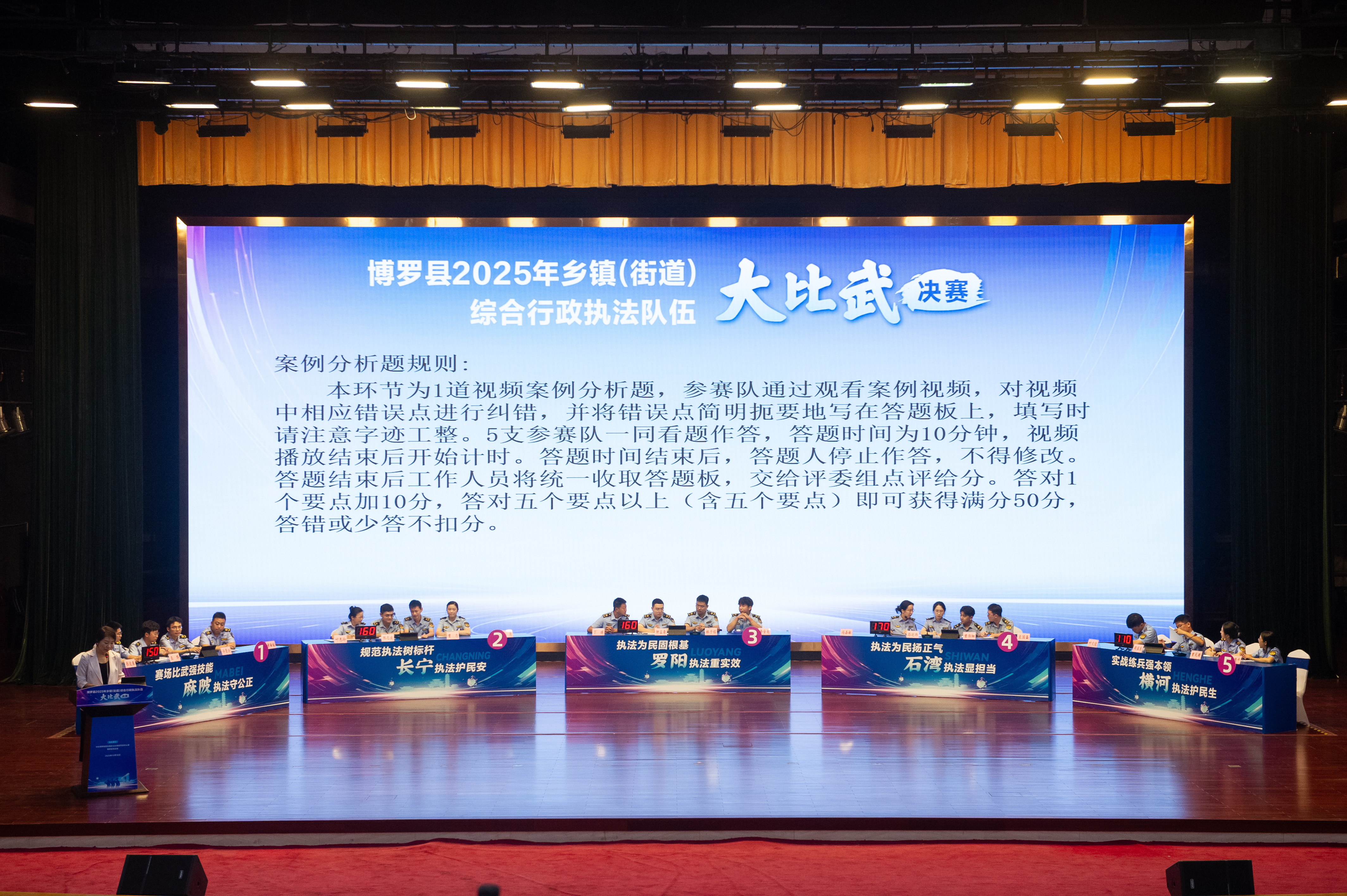 惠州日報訊 (記者盧泓宇 通訊員楊小青 陳琳 張璐雨)日前,博羅縣2025年鄉(xiāng)鎮(zhèn)(街道)綜合行政執(zhí)法隊伍“大比武”決賽在縣文化中心舉行。從初賽中脫穎而出的麻陂鎮(zhèn)、長寧鎮(zhèn)、羅陽街道、石灣鎮(zhèn)、橫河鎮(zhèn)5支“執(zhí)法勁旅”齊聚一堂,圍繞“理論+實務(wù)”展開綜合較量,全面展現(xiàn)了專業(yè)素養(yǎng)與過硬本領(lǐng),生動詮釋了新時代基層執(zhí)法隊伍的責(zé)任與擔(dān)當(dāng)。