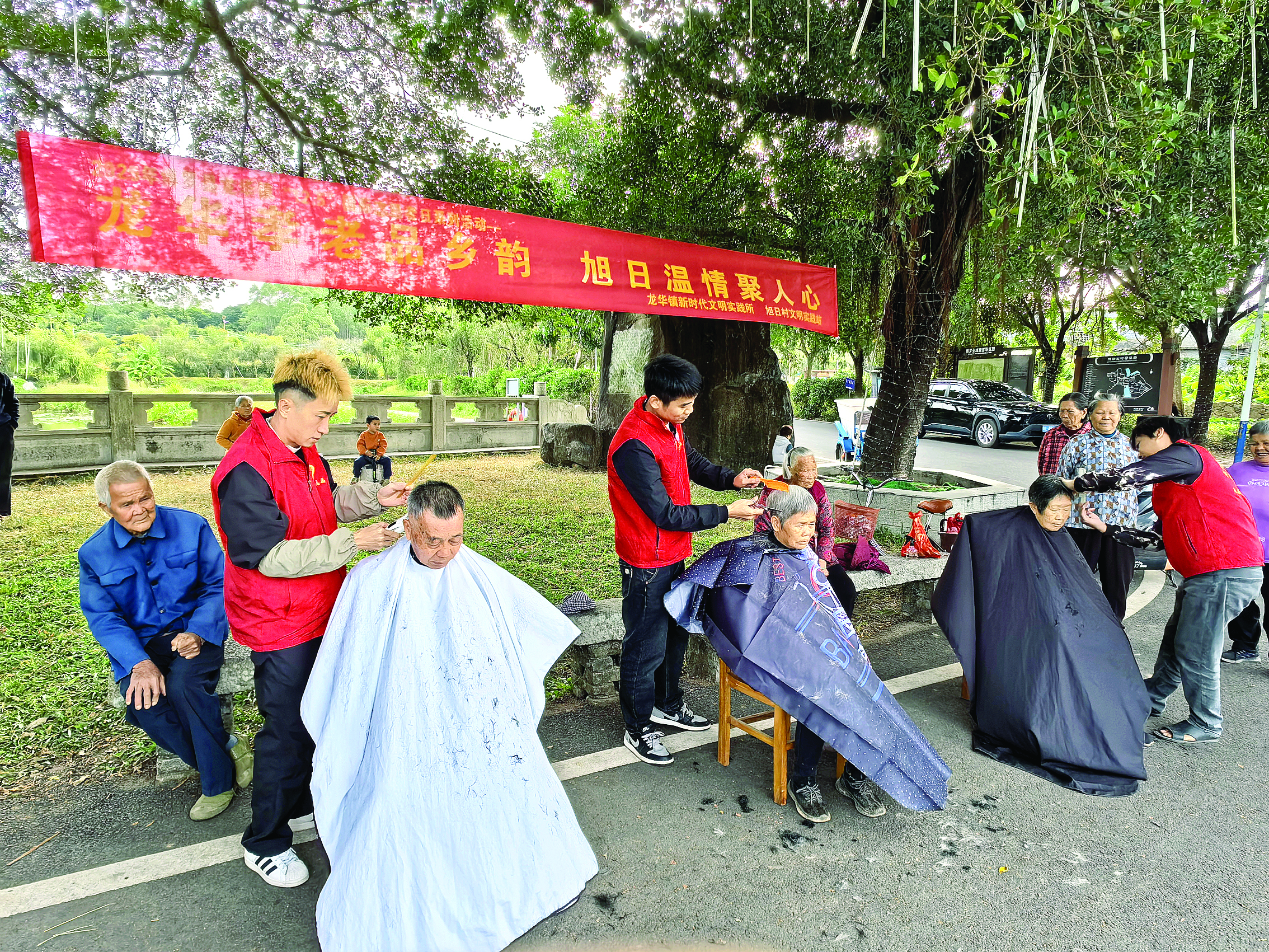 原來,從去年開始,在鎮(zhèn)上開理發(fā)店的青年陳鏡明、陳志康、陳桂方等人,見到村中有些長輩腿腳不靈活,到鎮(zhèn)上理發(fā)不方便,于是約定每月20號左右回村為老人義剪。