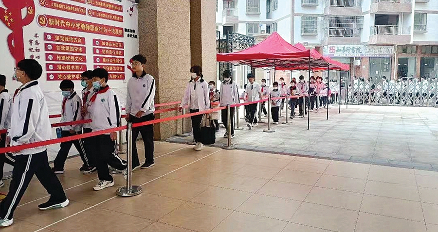 大亞灣區(qū)開學(xué)首日,學(xué)生有序進(jìn)入校園。