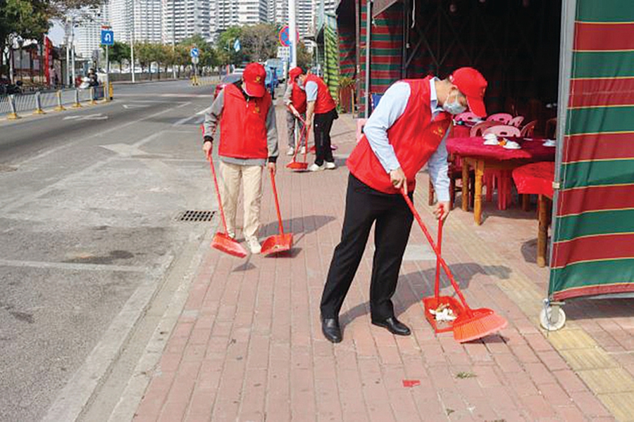 霞涌街道志愿者清掃街道;葜萑請(bào)記者匡湘鄂 曾靜妍 攝