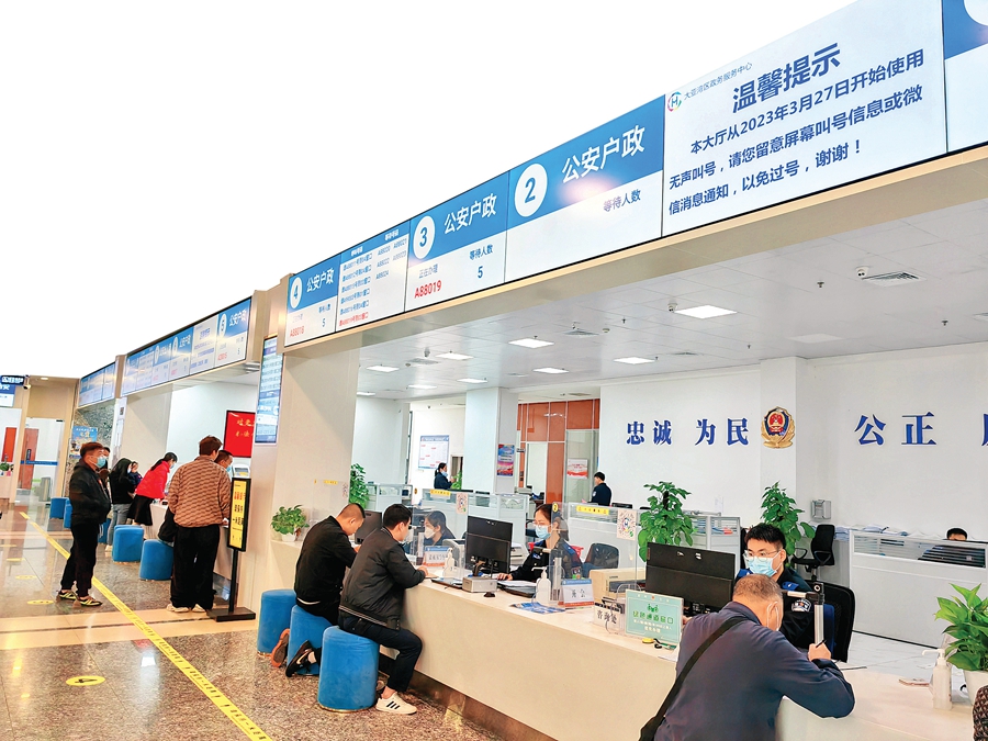 區(qū)政務(wù)服務(wù)中心啟用“無聲叫號”,窗口條屏實時顯示提醒信息。