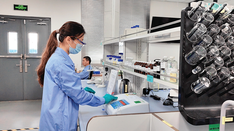 員工在科萊恩惠州工廠實驗室作業(yè)。