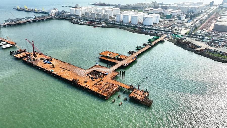 荃美石化碼頭項(xiàng)目建設(shè)現(xiàn)場(chǎng)。