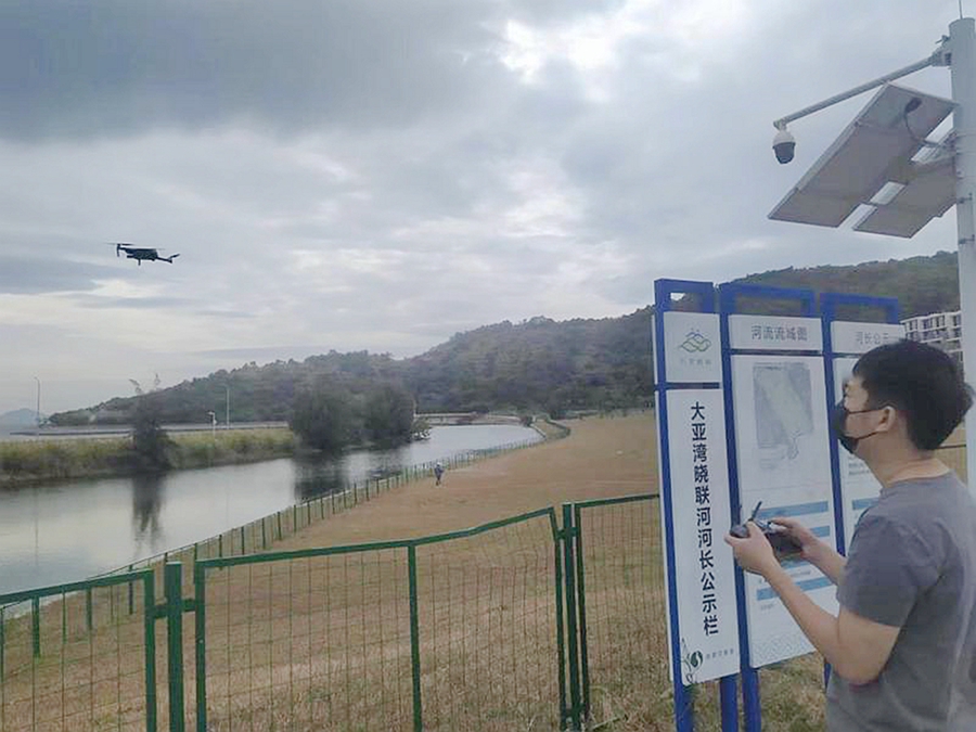 無(wú)人機(jī)巡河;葜萑?qǐng)?bào)記者匡湘鄂 通訊員陳志敏 攝