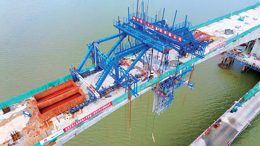 大亞灣跨海公用管廊(二期)項(xiàng)目特大型橋梁建設(shè)現(xiàn)場(chǎng);葜萑?qǐng)?bào)記者匡湘鄂 通訊員張楚鋒 攝