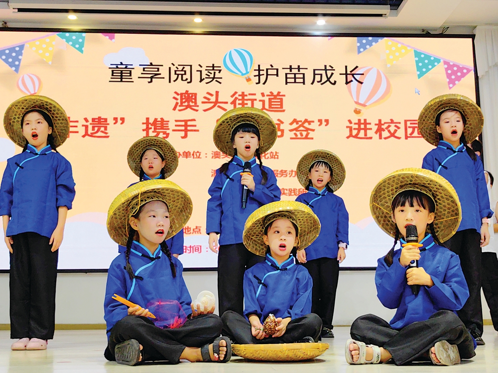 在澳頭綜合文化站,音樂老師對漁歌的文化特色、內(nèi)容和歷史價值等作了詳細(xì)介紹,并帶領(lǐng)孩子們演唱漁歌、演繹情景劇。傳統(tǒng)非遺與現(xiàn)代音樂情景劇相結(jié)合,讓漁歌有了新的內(nèi)容,有了更多的聆聽者,讓孩子們更加深刻地認(rèn)識到保護(hù)非遺的重要性與必要性。
